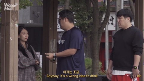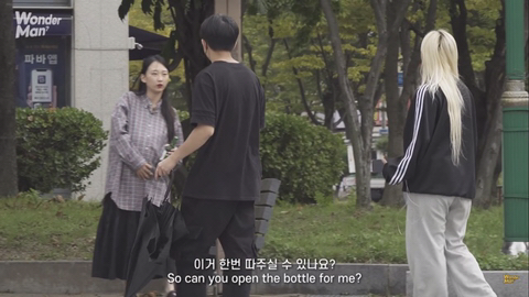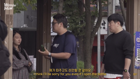 이번엔 다른 남자분에게 똑같이 소주병을 따달라고 했어