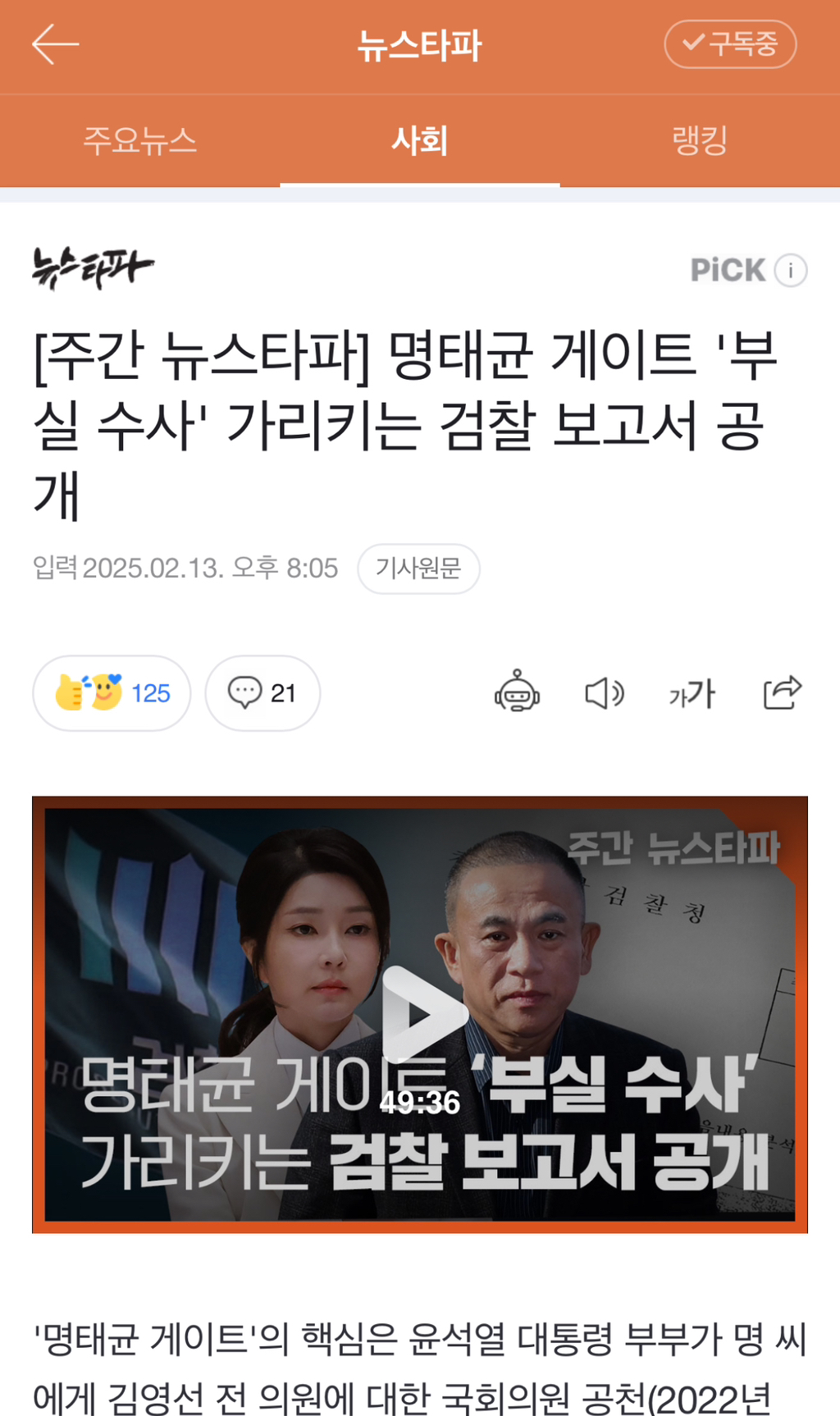 [여시뉴스데스크][주간 뉴스타파] 명태균 게이트 '부실 수사' 가리키는 검찰 보고서 공개 작성자탄핵3|작성시간25.02.14|조회수1,112 목록 댓글 8 글자크기 작게가 글자크기 크게가 출처: 여성시대 탄핵3후속강추+댓부탁해!https://n.news.naver.com/article/607/0000002461[주간 뉴스타파] 명태균 게이트 '부실 수사' 가리키는 검찰 보고서 공개'명태균 게이트'의 핵심은 윤석열 대통령 부부가 명 씨에게 김영선 전 의원에 대한 국회의원 공천(2022년 보궐선거)을 줬는가입니다. 지난달 뉴스타파는 명태균과 윤석열·김건희의 SNS 대화 280개n.news.naver.com 다음검색 현재 게시글 추가 기능 열기 북마크 공유하기 신고 센터로 신고 댓글 댓글 8 댓글쓰기 답글쓰기 댓글 리스트 작성자무대기름칠 | 작성시간 25.02.14 쉬쉬한다고 우리가 모를줄아나 와 진짜 요즘 기사보면 기막혀서 와..와.. 밖에안나옴 작성자2025년4월4일 윤석열이 죽었음다-.- | 작성시간 25.02.14 완 작성자10석열 | 작성시간 25.02.14 빨리하라고 작성자알러지프리 | 작성시간 25.02.14 특검하자! 검찰 제대로 안할꺼면 딴데다 넘겨라 작성자따끈따끈 고영이 | 작성시간 25.02.14 특검해야해 검찰은 진짜 한통속이라 믿을수가 없다고 댓글 전체보기