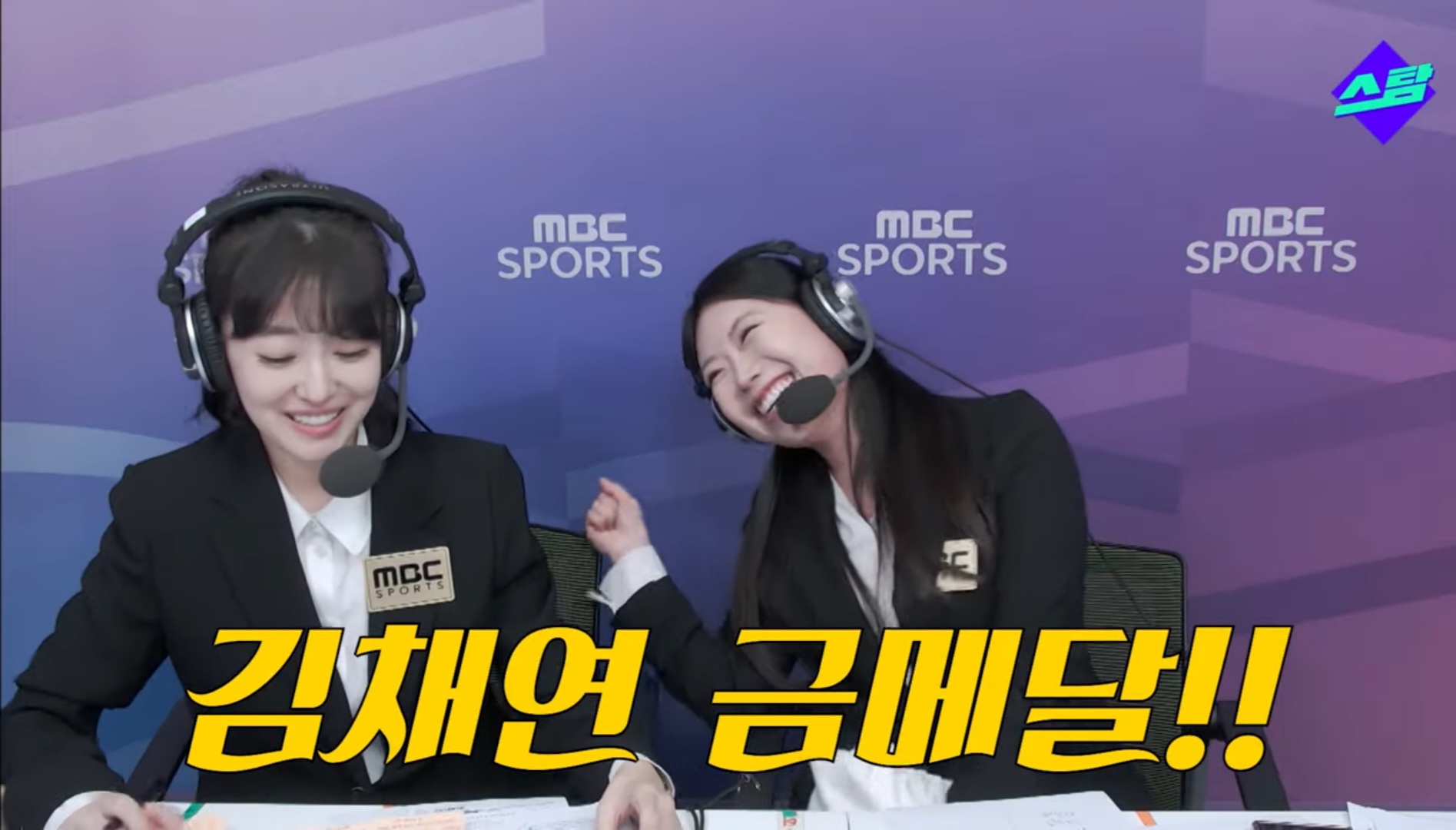 이재은 아나와 김해진 전 피겨선수 인데 김채연선수 금메달 확정이라 너무 환하게 웃으면서 좋아하는 거 너무 ㄱㅇㅇ