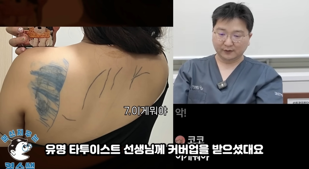 20대 때 타투 색이 다 빠져서 커버업을 받았는데