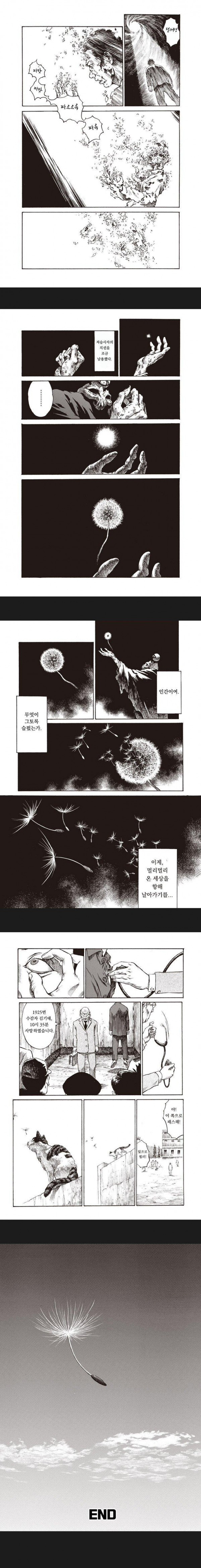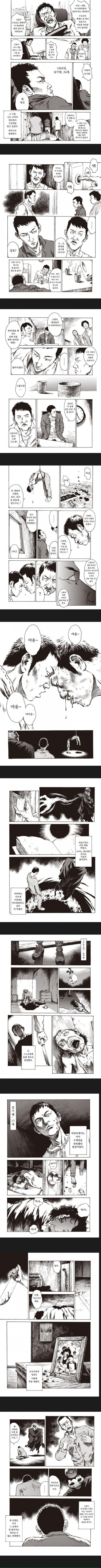 '가난에 내몰려 운도없고, 요령도 없이 사회의 그늘 속에서 살아가던 한 남자가 죄를 짓고 마침내 사형을 당하는 모습은 정말인지 보기 힘들었다. 늙거나 병 들어 죽는 것과 달리 모든 것이 인생의 정점에 달한 젊은 시절에 갑자기 인생이 끝나버리는 것은 인간에게 있어 얼마나 충격적인 일인가. 그의 짧은 인생을 따라 가며 슬픈 과거사와 한 프레임 한 프레임마다 스며있는 작가의 표현력, 그리고에 연출에 눈을 뗄 수 없었다. 시대를 거슬러 올라가는 가운데, 등장하는 인물의 얼굴이 세세하게 변화하는 모습 또한 훌륭했다. 분명히 시간을 들여 읽을만한 가치가있는 작품이었다.'