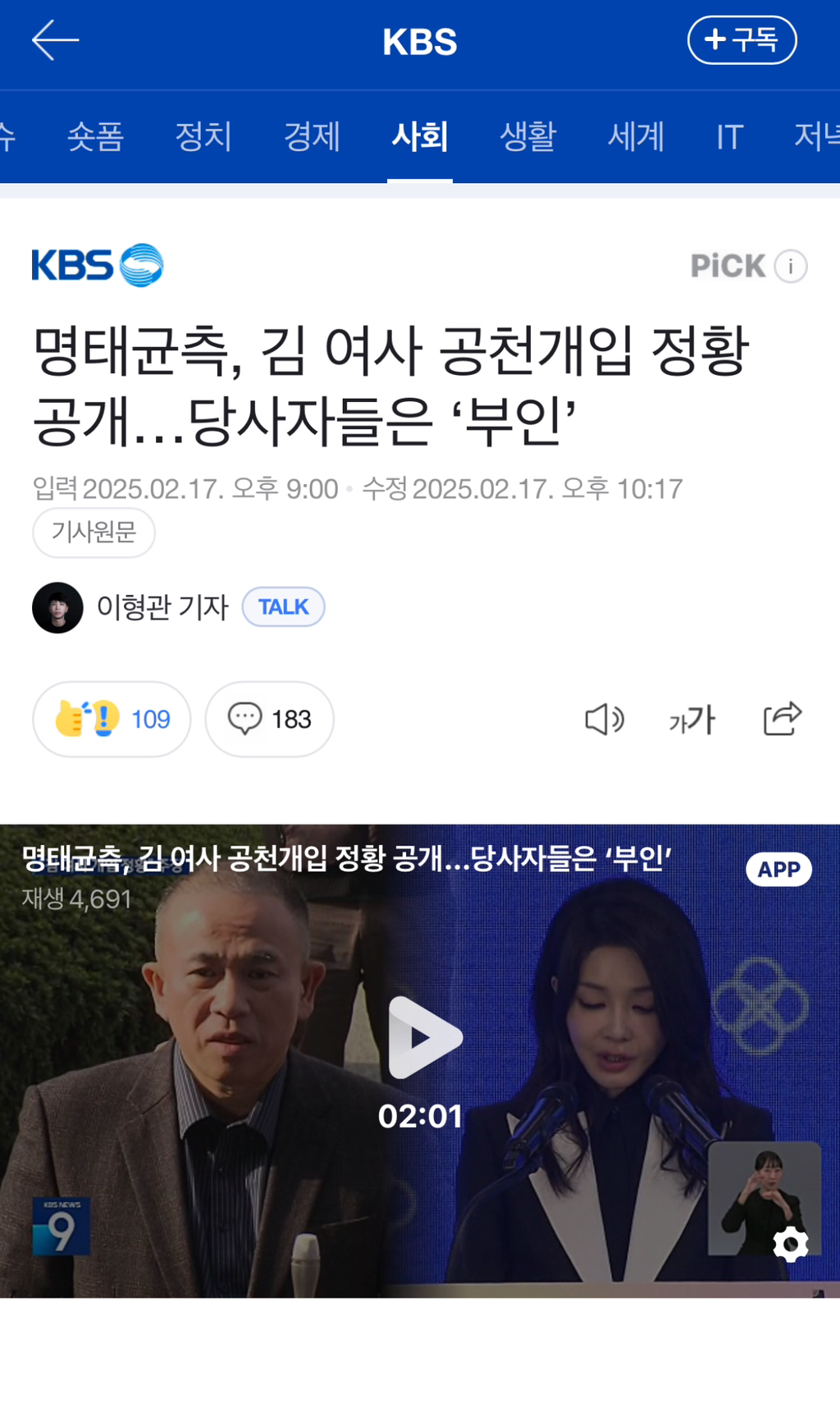 [여시뉴스데스크]명태균측, 김 여사 공천개입 정황 공개…당사자들은 ‘부인’ 작성자탄핵3|작성시간25.02.18|조회수1,330 목록 댓글 1 글자크기 작게가 글자크기 크게가 출처: 여성시대 탄핵3후속강추! https://n.news.naver.com/article/056/0011894571명태균측, 김 여사 공천개입 정황 공개…당사자들은 ‘부인’윤석열 대통령 부부 공천 개입 의혹 사건의 핵심 인물인 명태균 씨가 오늘(17일) 통화 복기록을 하나 공개했습니다. 김건희 여사가 지난해 총선 때도 공천에 개입한 정황이 담겨있다고 주장했습n.news.naver.com 다음검색 현재 게시글 추가 기능 열기 북마크 공유하기 신고 센터로 신고 댓글 댓글 1 댓글쓰기 답글쓰기 댓글 리스트 작성자3시10분에만나요 | 작성시간 25.02.18 뭐 언제까지 부인할건데 끝까지 발악해라그래 ㅋㅋ 댓글 전체보기