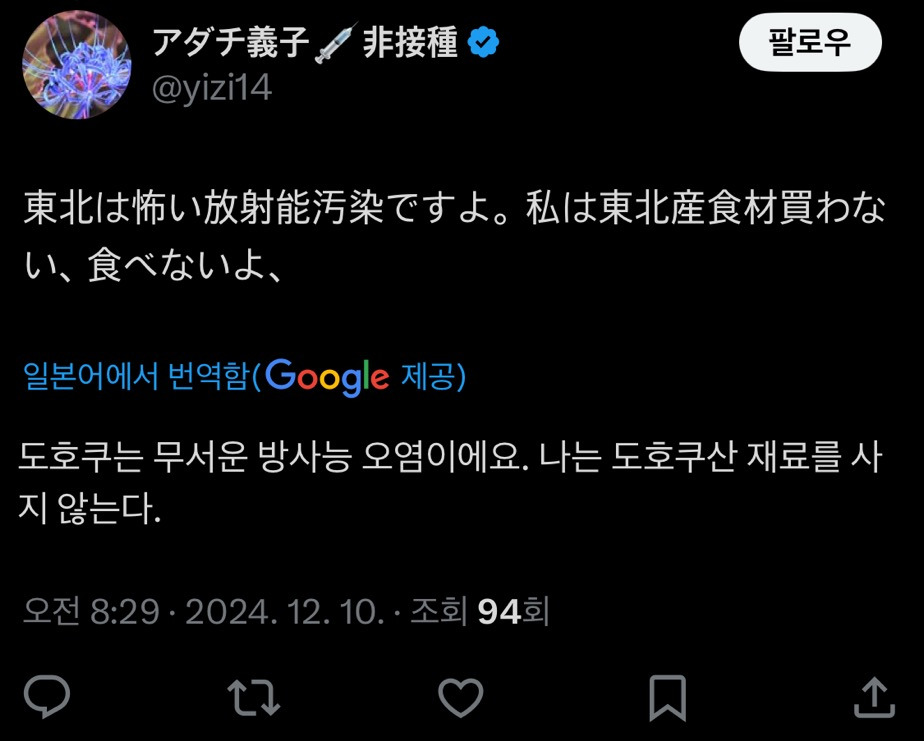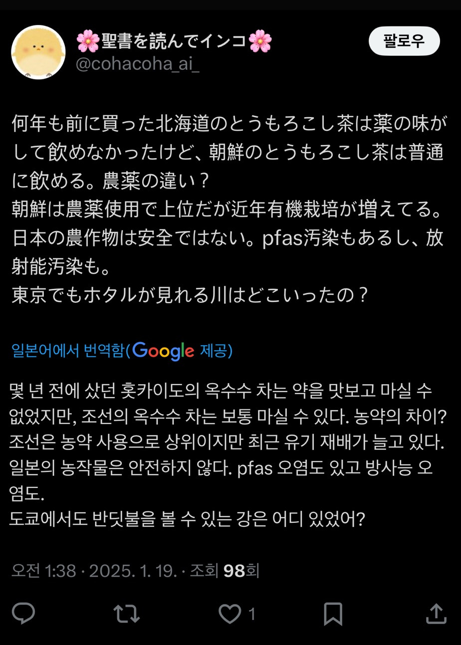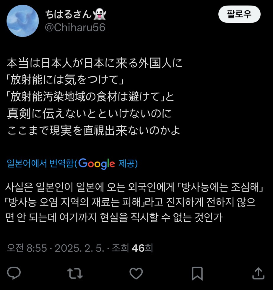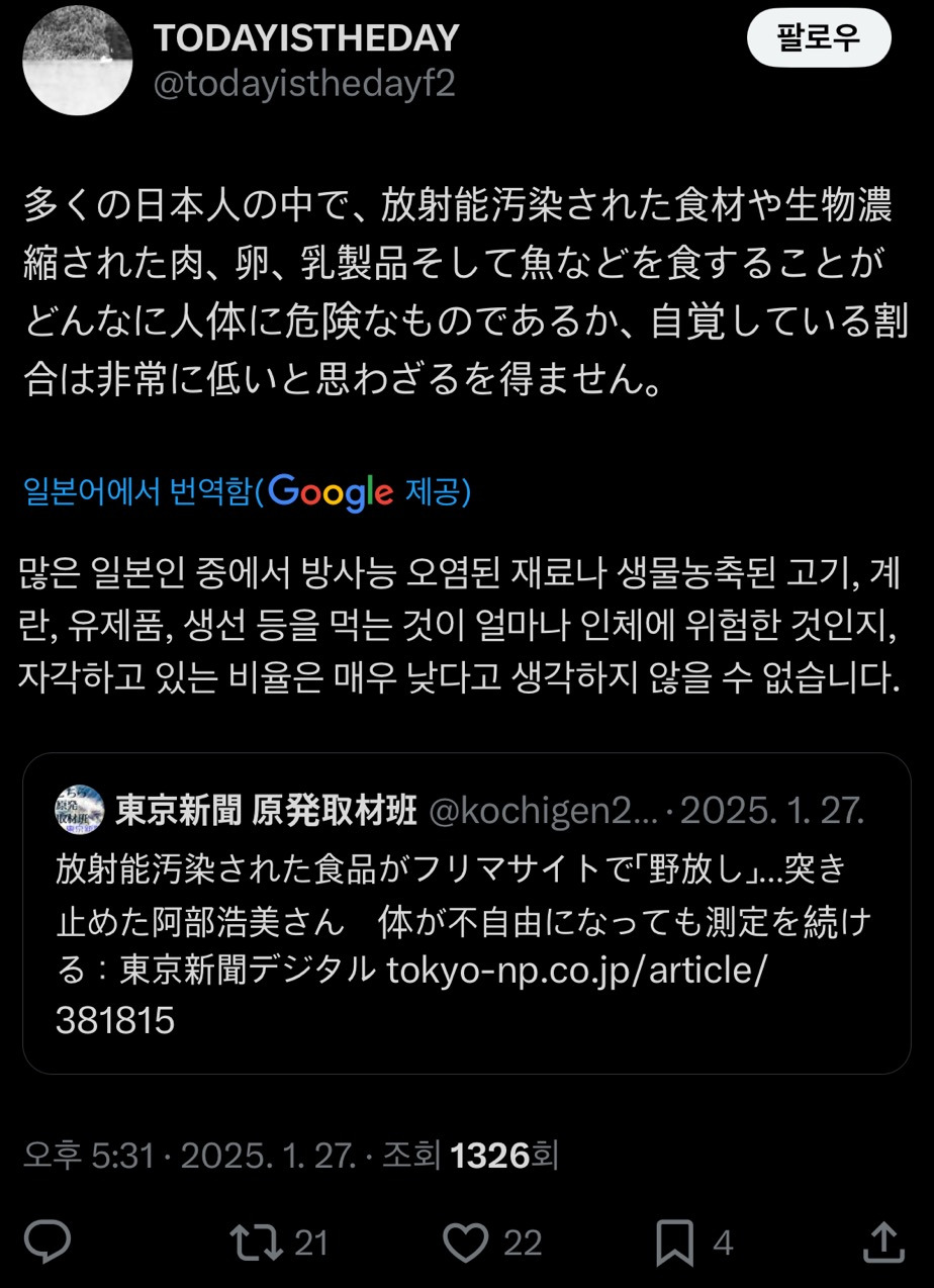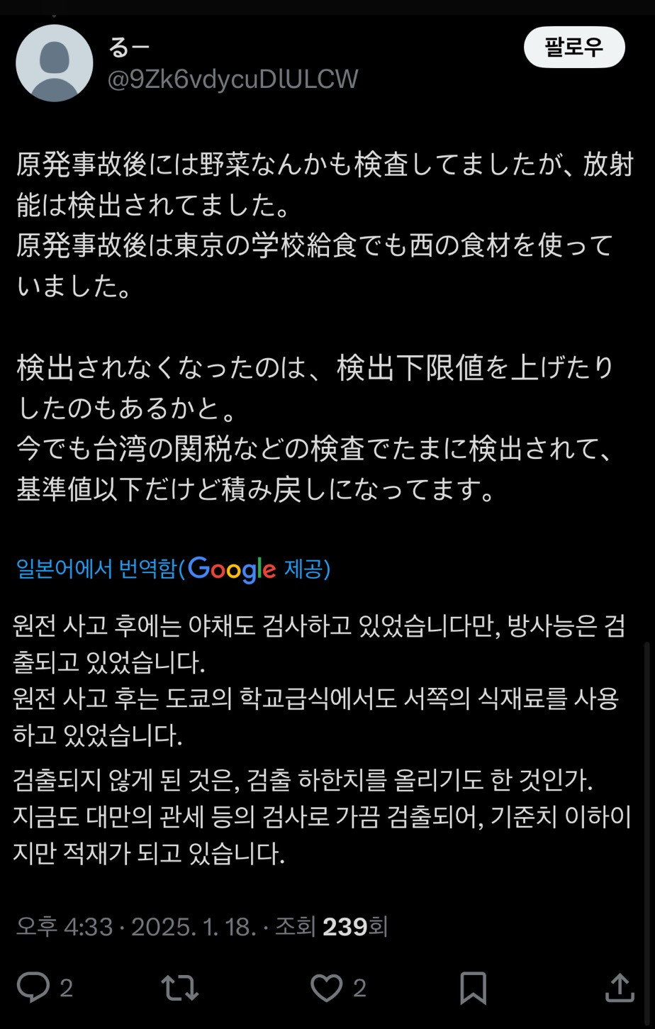 2025년 현재 일본인들도 일본 내부 식재료 방사능 오염에 민감함