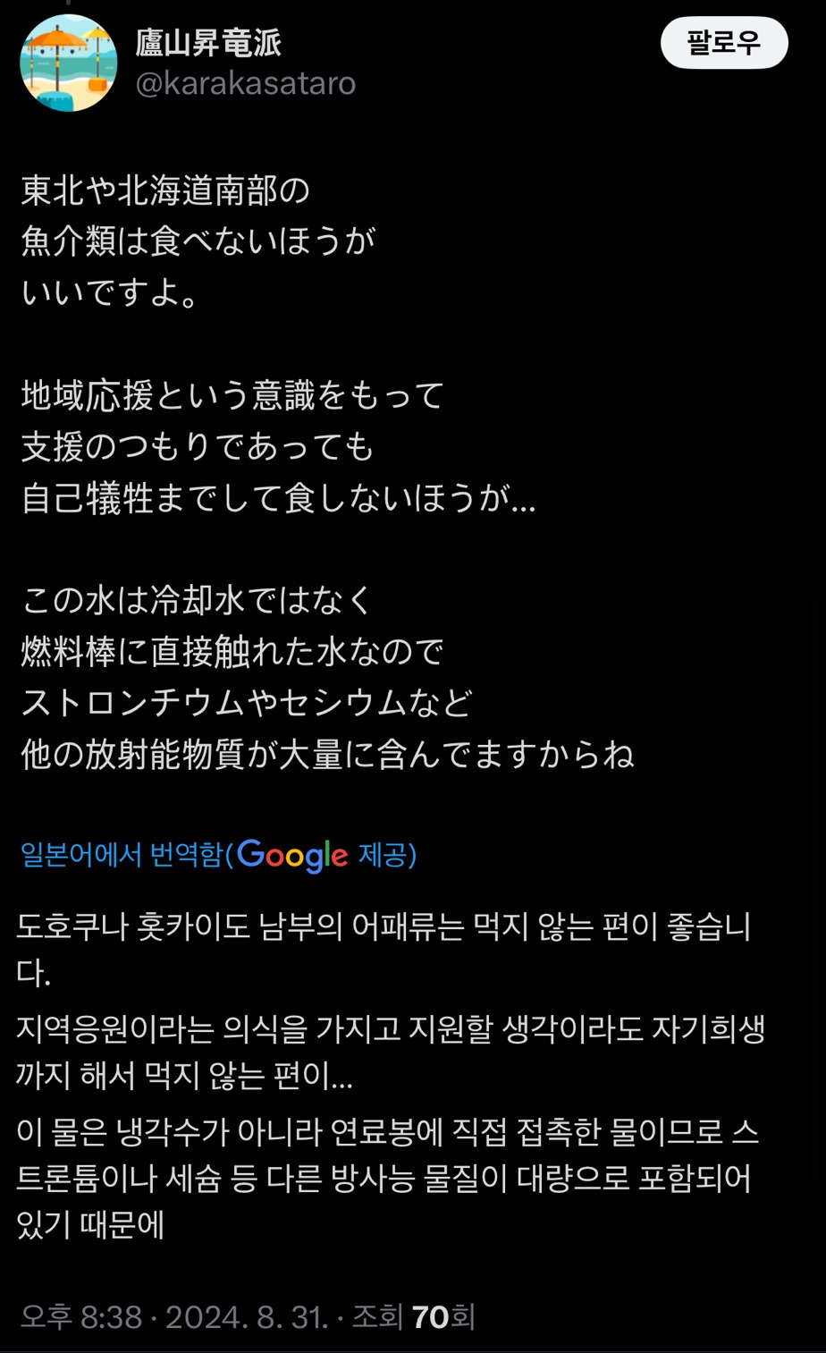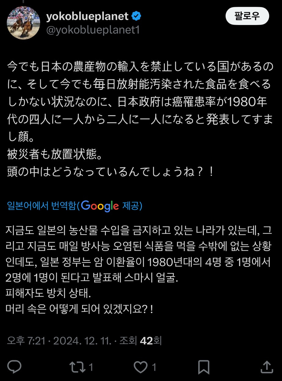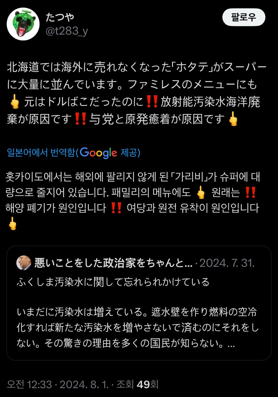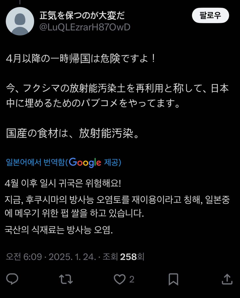 2025년 현재 일본인들도 일본 내부 식재료 방사능 오염에 민감함