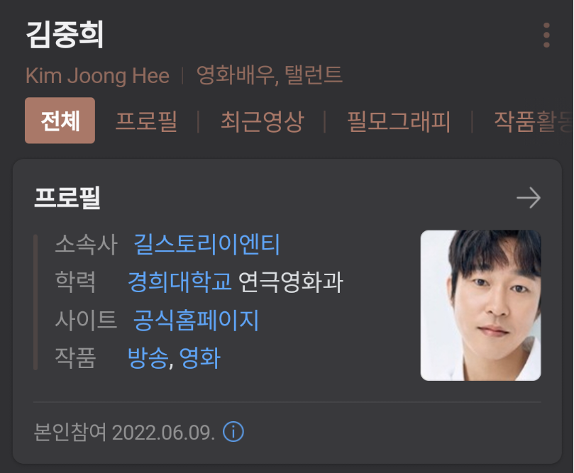 다른 출연작품은 명불허전, 미스터션샤인 등