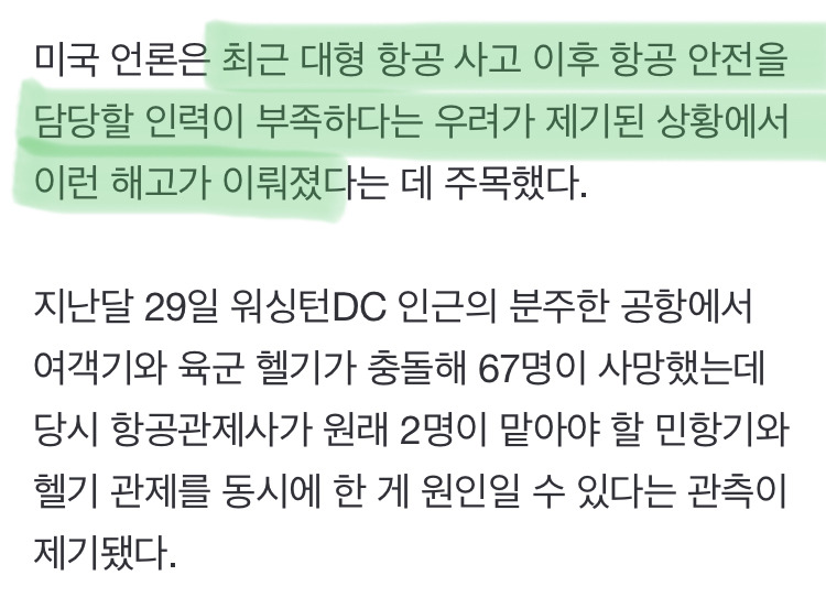 [여시뉴스데스크]대형 항공사고 한달도 안됐는데…트럼프, 항공 안전 공무원도 해고 작성자(본인닉네임).|작성시간25.02.18|조회수2,227 목록 댓글 4 글자크기 작게가 글자크기 크게가 출처: https://n.news.naver.com/article/001/0015218554?sid=104 다음검색 현재 게시글 추가 기능 열기 북마크 공유하기 신고 센터로 신고 댓글 댓글 4 댓글쓰기 답글쓰기 댓글 리스트 작성자Ramin Karimloo | 작성시간 25.02.18 전세계가 후퇴하는듯 작성자L heure du chien et du loup | 작성시간 25.02.18 미국 망하게하려는 중국 스파이래도 믿겠다 작성자내소원=친일파척결 | 작성시간 25.02.18 ㅁㅊ... 작성자Saturdays NYC | 작성시간 25.02.18 그럼 트럼프 에어포스원도 항공 안전 점검 받지마 댓글 전체보기