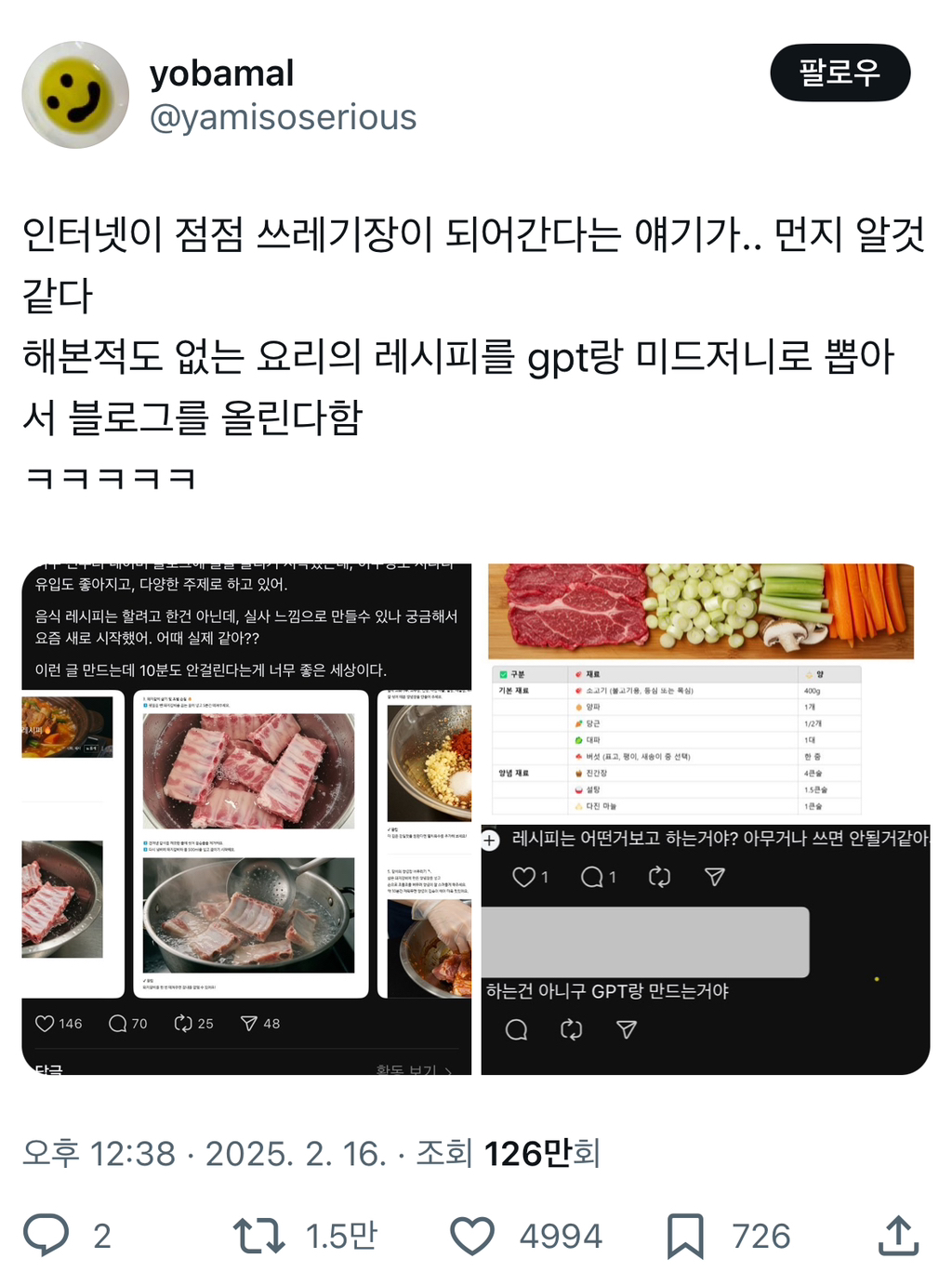 작성자도지부장관 작성시간 25.02.18 네이버 진짜 ai 못잡는듯....... 근 1년간 존나 심해짐 검색 걍 개똥됐더라