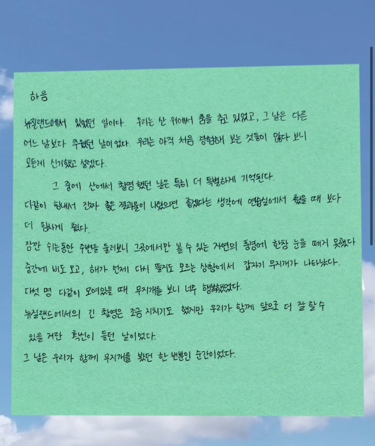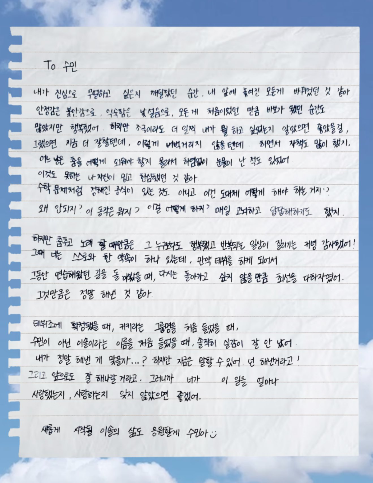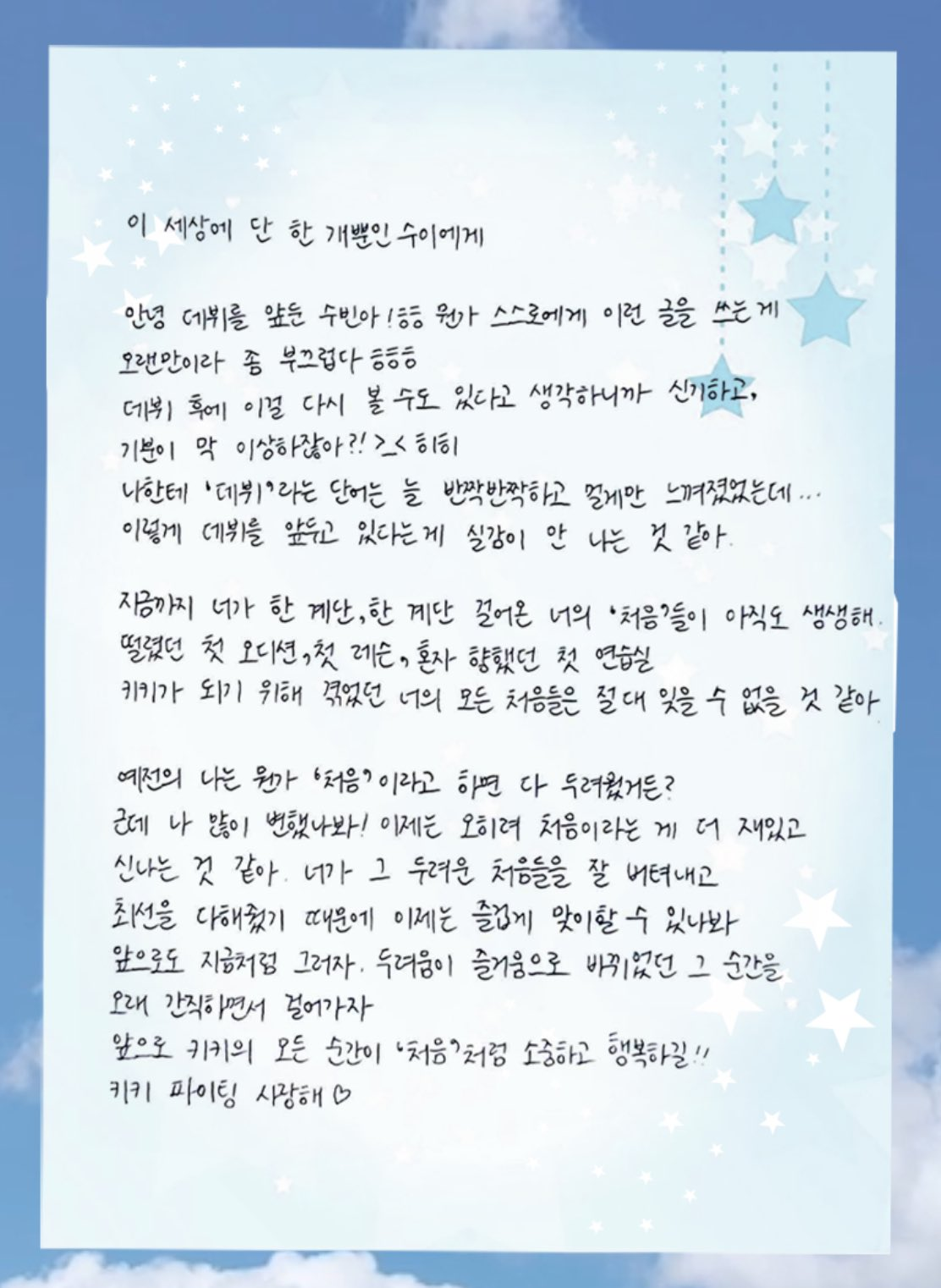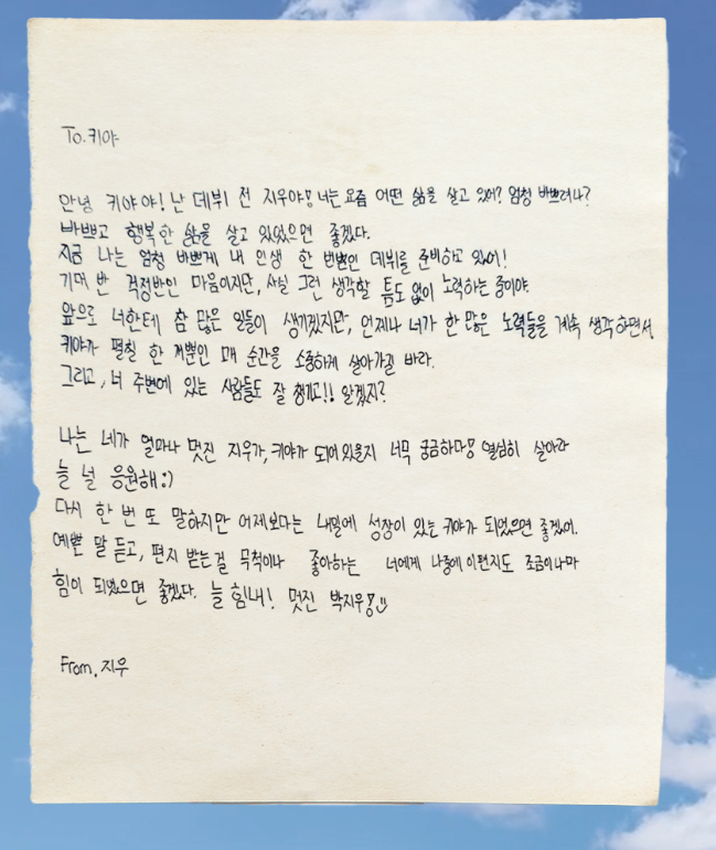 [흥미돋]키키 멤버들이 데뷔전 썼던 편지 모음..,jpg 작성자수랄앙|작성시간25.02.18|조회수24,787 목록 댓글 18 글자크기 작게가 글자크기 크게가 출처: 더쿠 - 키키 멤버들이 데뷔전 썼던 편지 모음..,jpg더쿠 - 키키 멤버들이 데뷔전 썼던 편지 모음..,jpg이솔(수민) 수이 하음 지유 키야(지우) 멤버마다 편지지도 다 다름..,ㅜㅜtheqoo.net 이솔(수민) 수이 하음 지유 키야(지우) kiii kiii 멤버마다 편지지도 다 다름..,ㅜㅜ 다음검색 현재 게시글 추가 기능 열기 북마크 공유하기 신고 센터로 신고 댓글 댓글 18 댓글쓰기 답글쓰기 댓글 리스트 작성자두바이치즈버거 | 작성시간 25.02.18 수민이라는 멤버 어른스럽네 작성자고영만두 | 작성시간 25.02.18 키야 글씨 리얼 초딩같네ㅠㅜㅋㅋㅋㅋㅋㅋ 작성자콩쥐가이겨십새들아 | 작성시간 25.02.19 데뷔하자마자 편지쓰는것도 진짜 그렇다 진짜 이정도면 아트디렉터 민희진이랑 뉴진스 성덕이다 작성자가넷과 겨울아이 | 작성시간 25.02.19 글씨체귀욥 작성자돼지외계인 | 작성시간 25.02.22 뮤비 어디서 찍은지 궁금했는데 뉴질랜드였구나 댓글 전체보기
