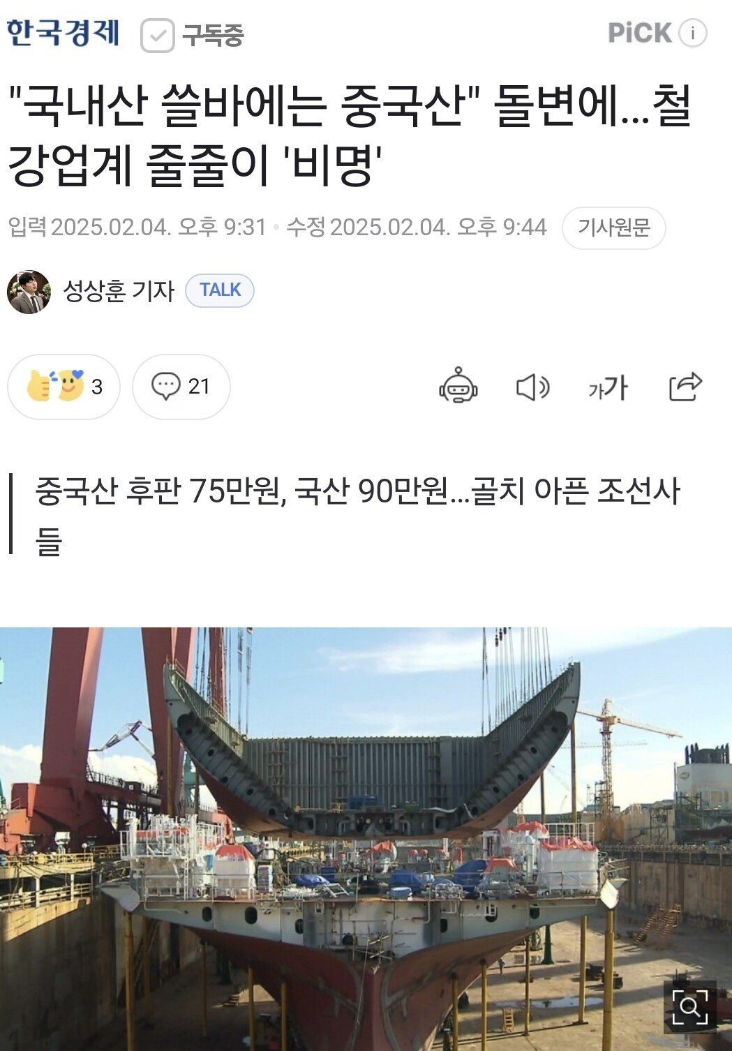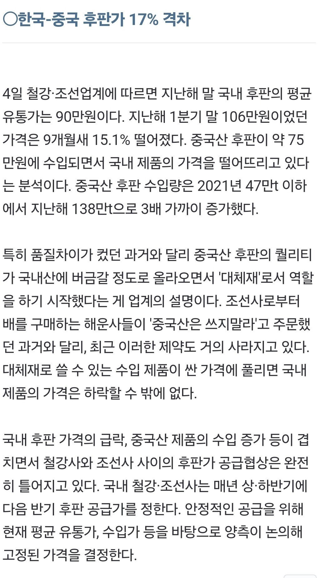 더 싸다는건데 한국 철강업계가 가격 더 낮춰도 중국산이
