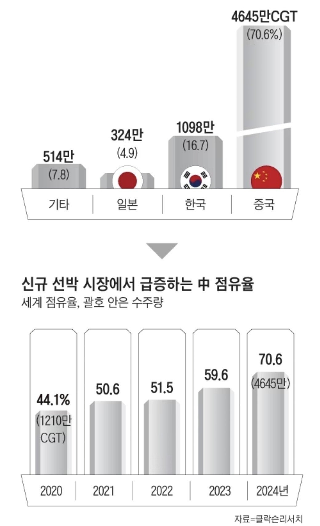 최근에 중국 수주율이 70% 로 역대 최고를 찍고