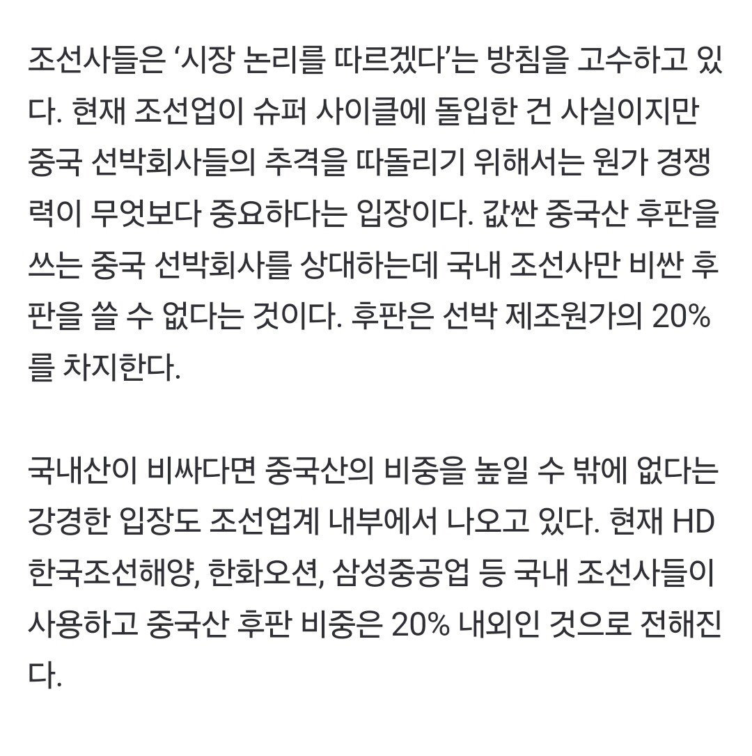 한국 조선업은 그냥 국산 대신