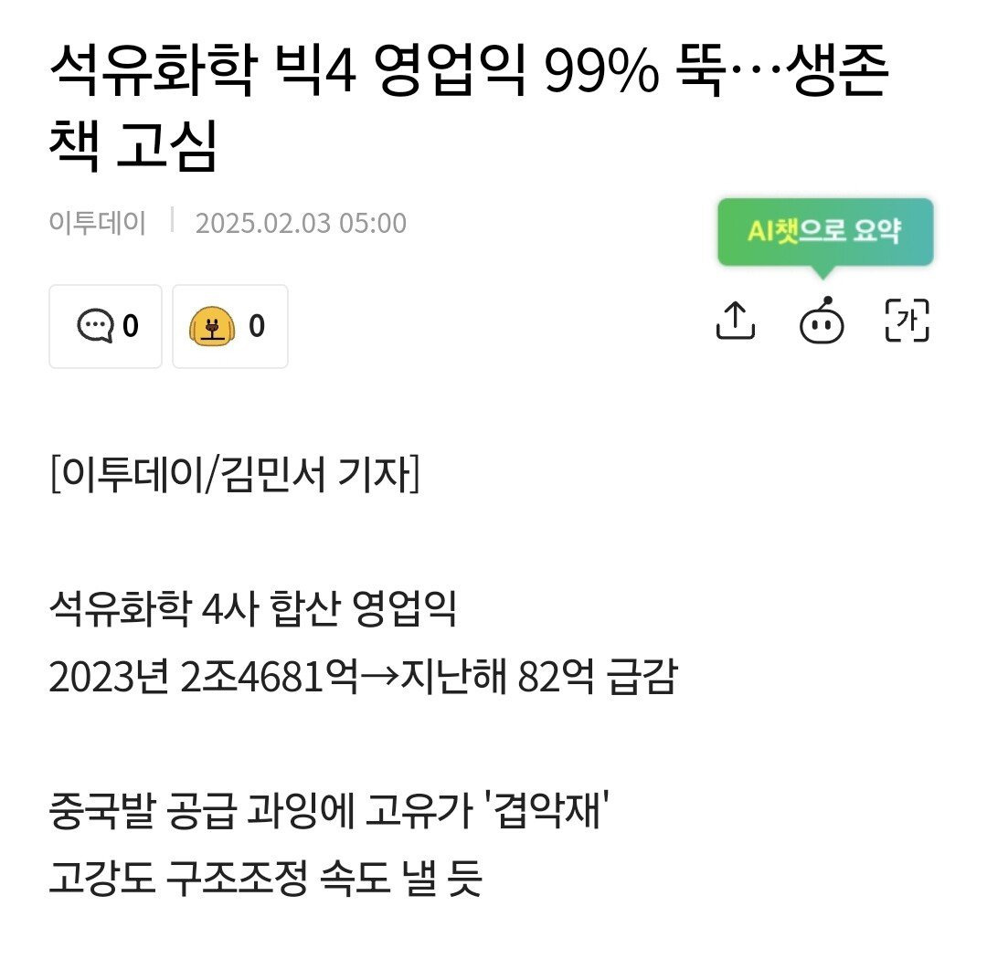 롯데케미컬등 석유화학 빅 4 나가리되는등.