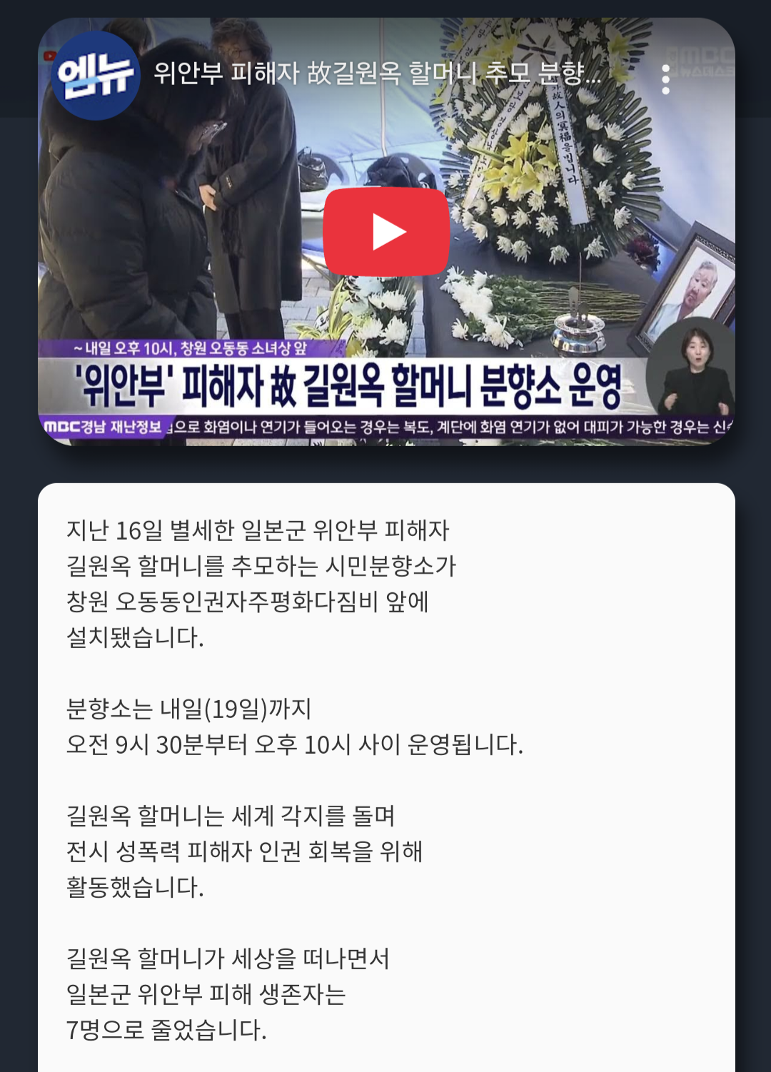 위안부 피해자 할머니 중 생존해계신 분이 이제 겨우 7분 남았는데