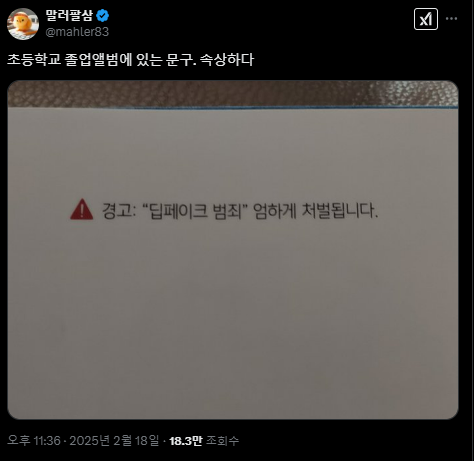 작성자토끼가득하게산다 작성시간 25.02.19 초등학교 졸업앨범과 딥페이크 범죄라는 말이 너무 안어울려서 잠깐 이해못함 하...ㅠㅠ