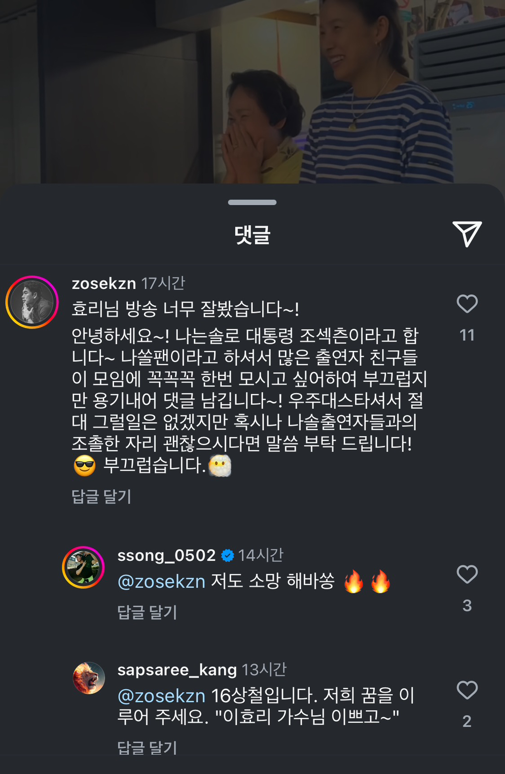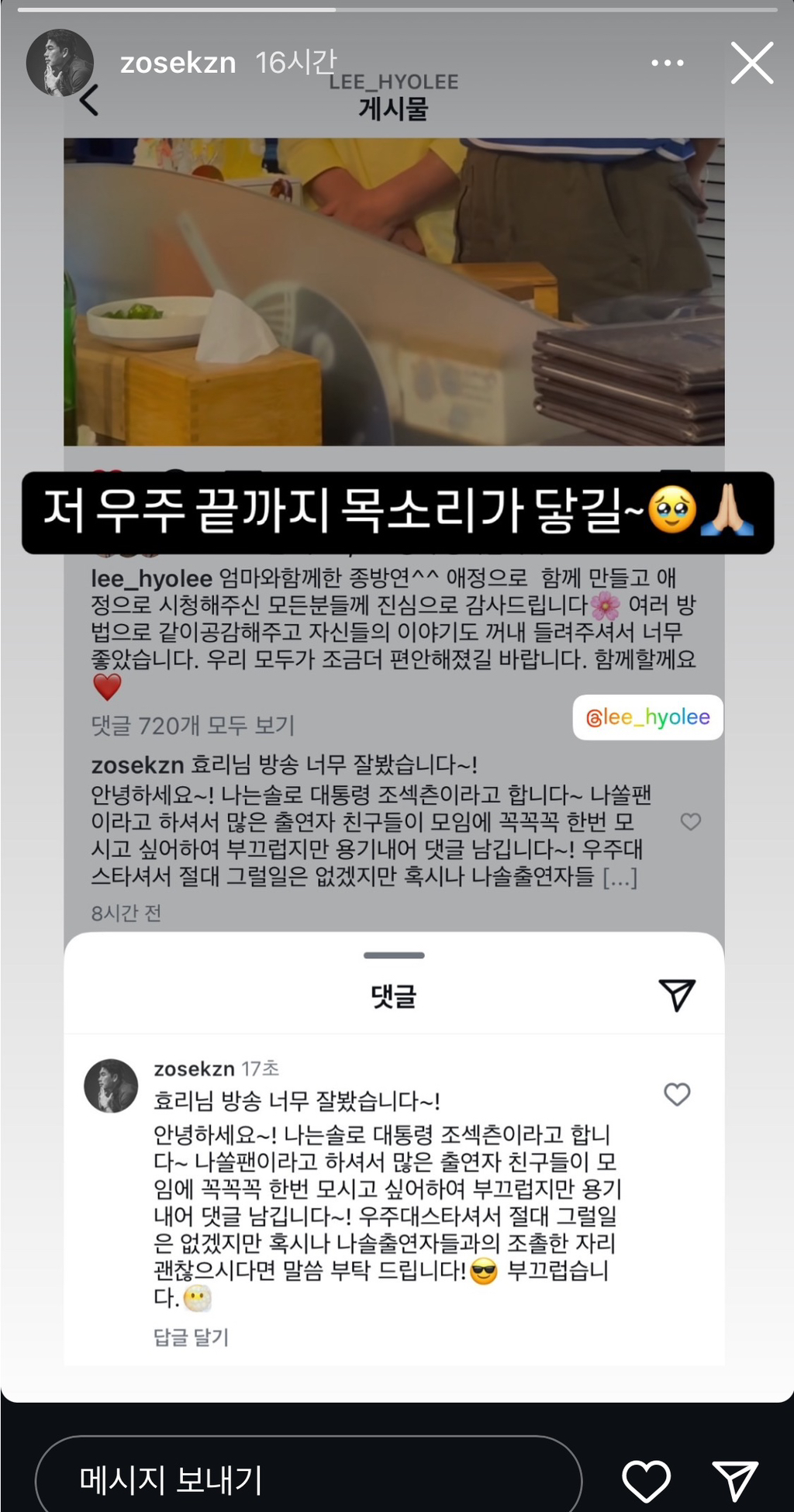 평소 나는솔로 팬이라고 말해온 이효리 인스타에