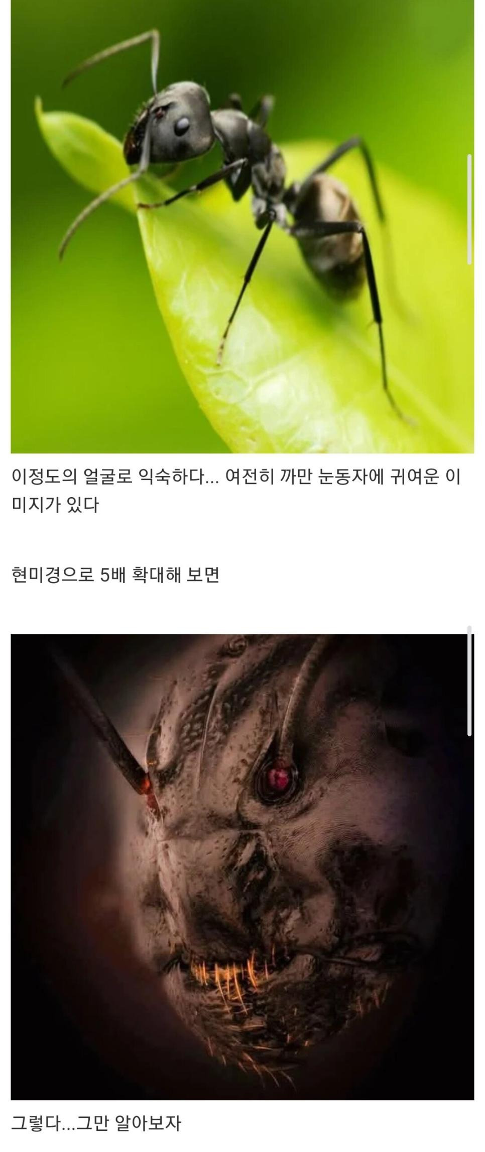 [스크랩] [기타]현미경으로 확대한 개미 얼굴 작성자댑댑댑|작성시간25.02.21|조회수5,843 목록 댓글 28 글자크기 작게가 글자크기 크게가 꿈에 나올까 두려운 얼굴이네 ㄷㄷㄷ 다음검색 스크랩 원문 : 이종격투기 현재 게시글 추가 기능 열기 북마크 공유하기 신고 센터로 신고 댓글 댓글 28 댓글쓰기 답글쓰기 댓글 리스트 작성자라이언거슬림 | 작성시간 25.02.21 오크냐 작성자물위에서광합성 | 작성시간 25.02.21 눈을 왜 그렇게 떠 작성자swag | 작성시간 25.02.22 존못 작성자하이티비요 | 작성시간 25.02.22 존나못생김 작성자돼지모기 | 작성시간 25.02.23 아개웃겨 왤케 무서워 댓글 전체보기