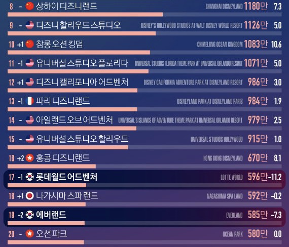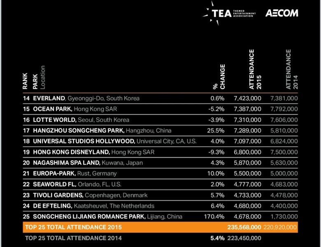 2015년 세계 테마파크 순위인데, 에버랜드는 14위고 롯데월드는 16위