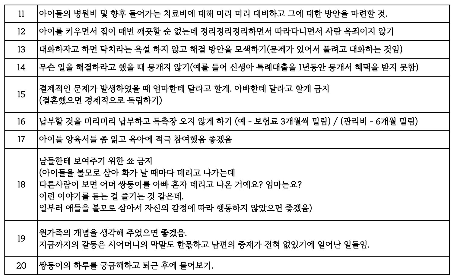 19. 원가족의 개념을 생각해 주었으면 좋겠음.
