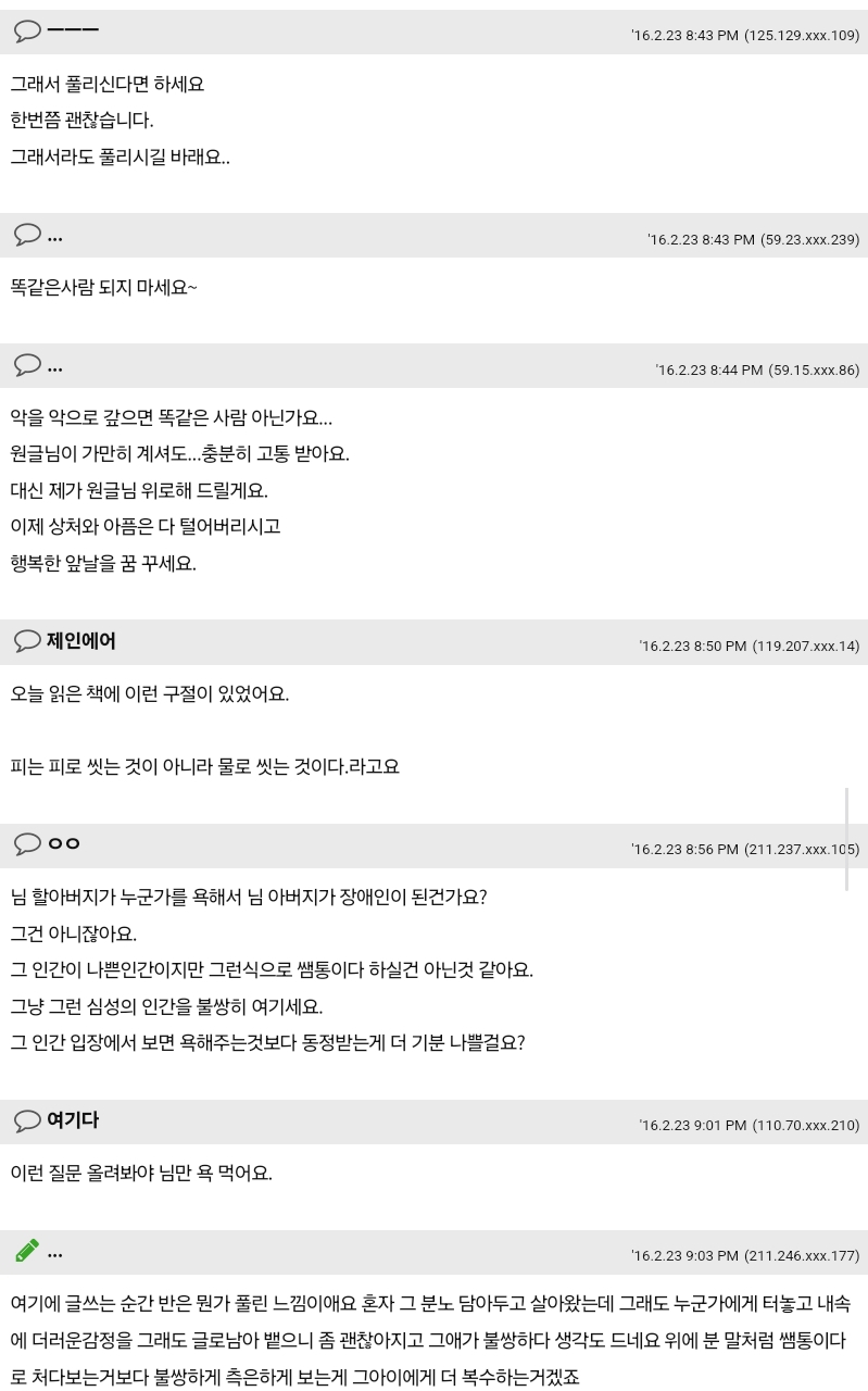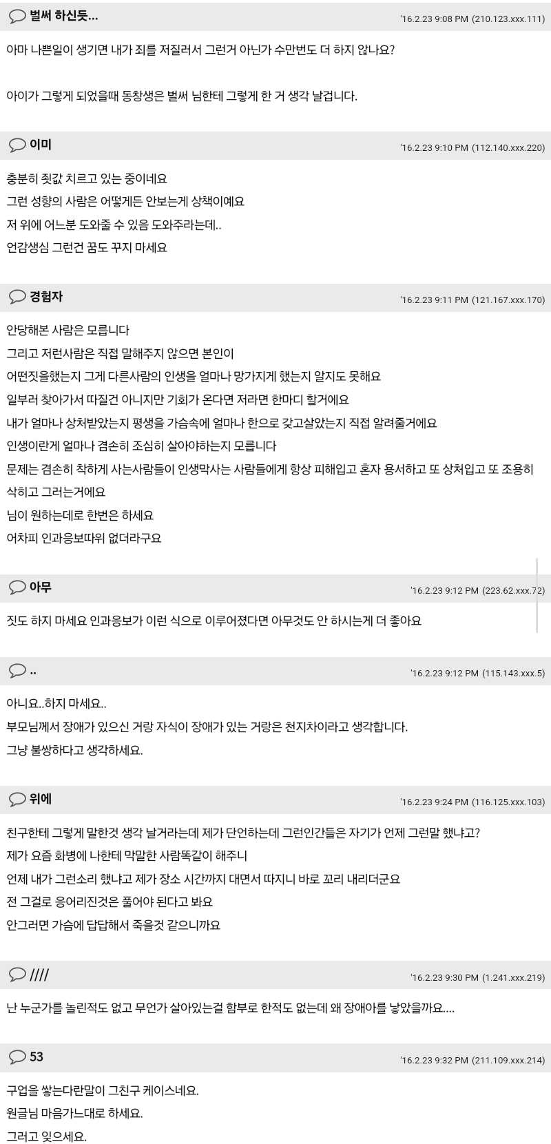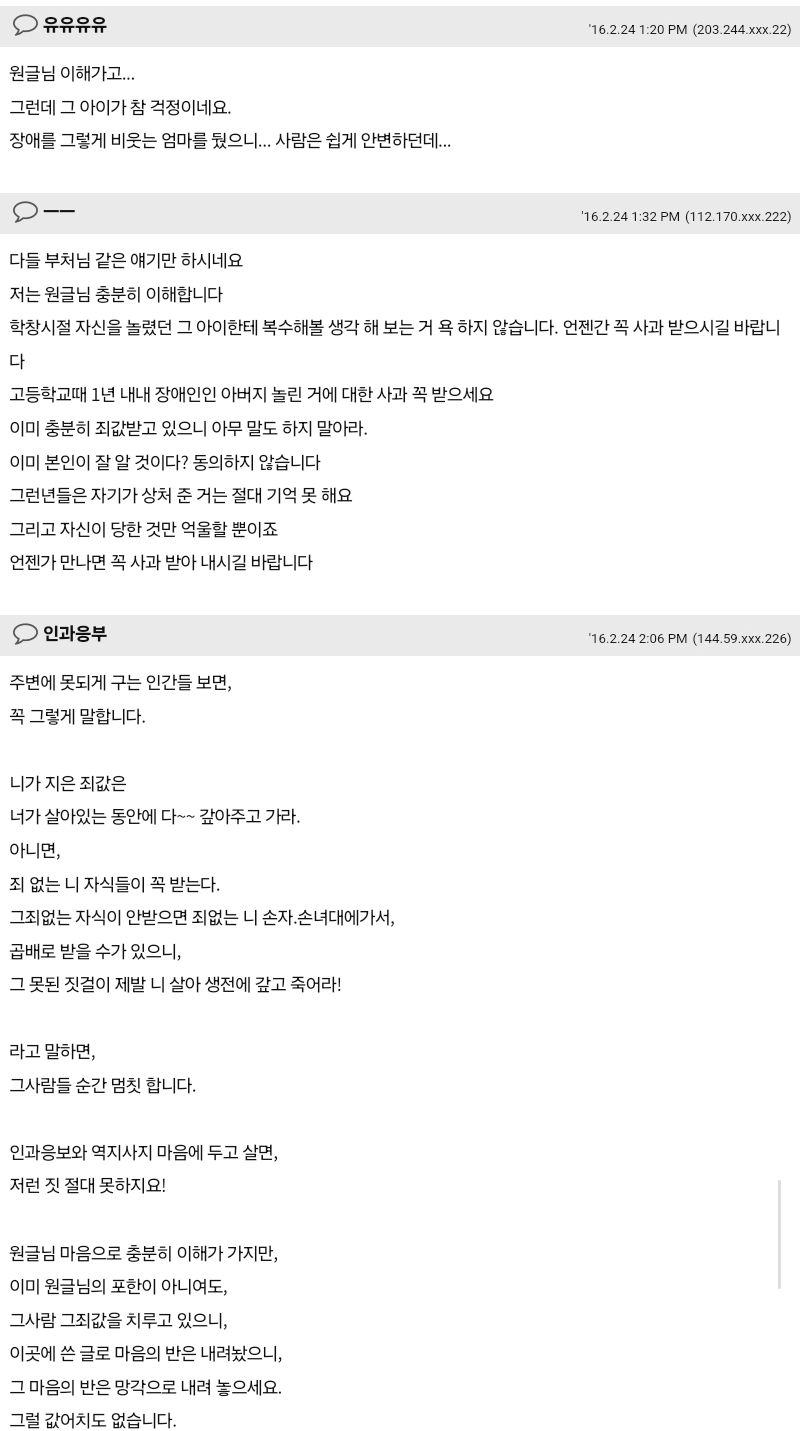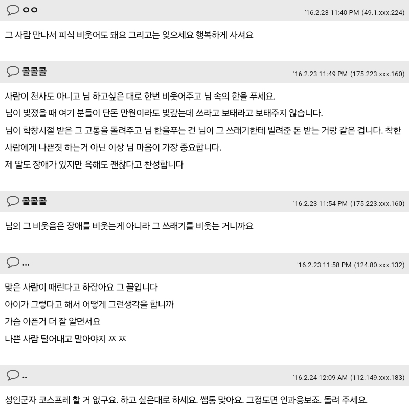 작성자17:08 작성시간 25.02.25 저정도도 못하냐 ㄱㅊ 벌 받은거 쌤통이다 그러게 착하게 살지 하암