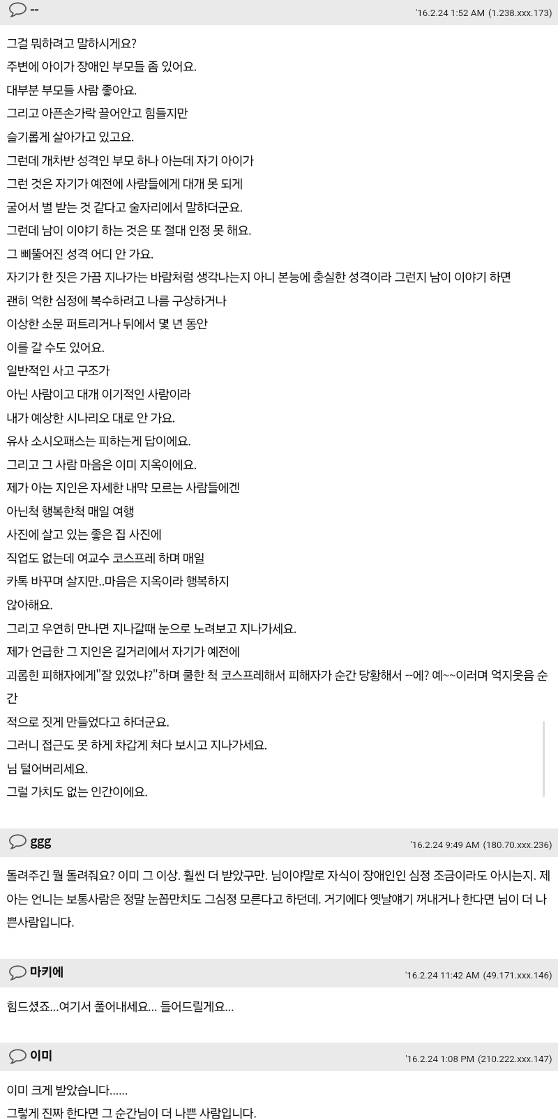 그정도는 1년을 지옥같이 당한 제가 해도 될런지..