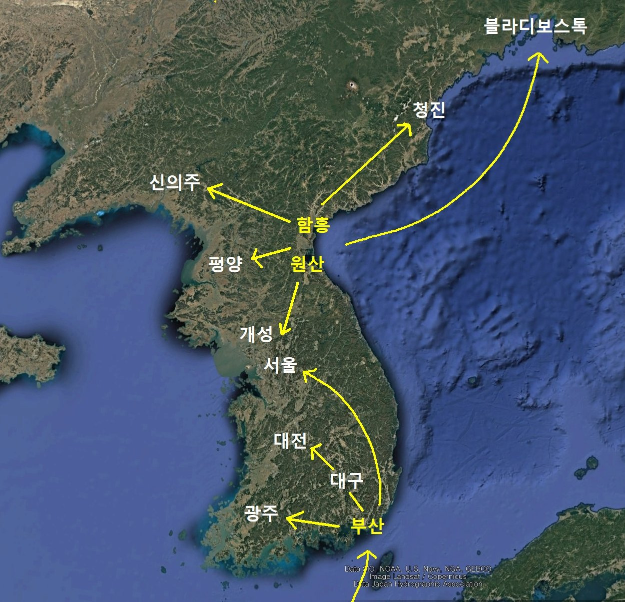 바로 이곳 원산&함흥 라인을 보자.