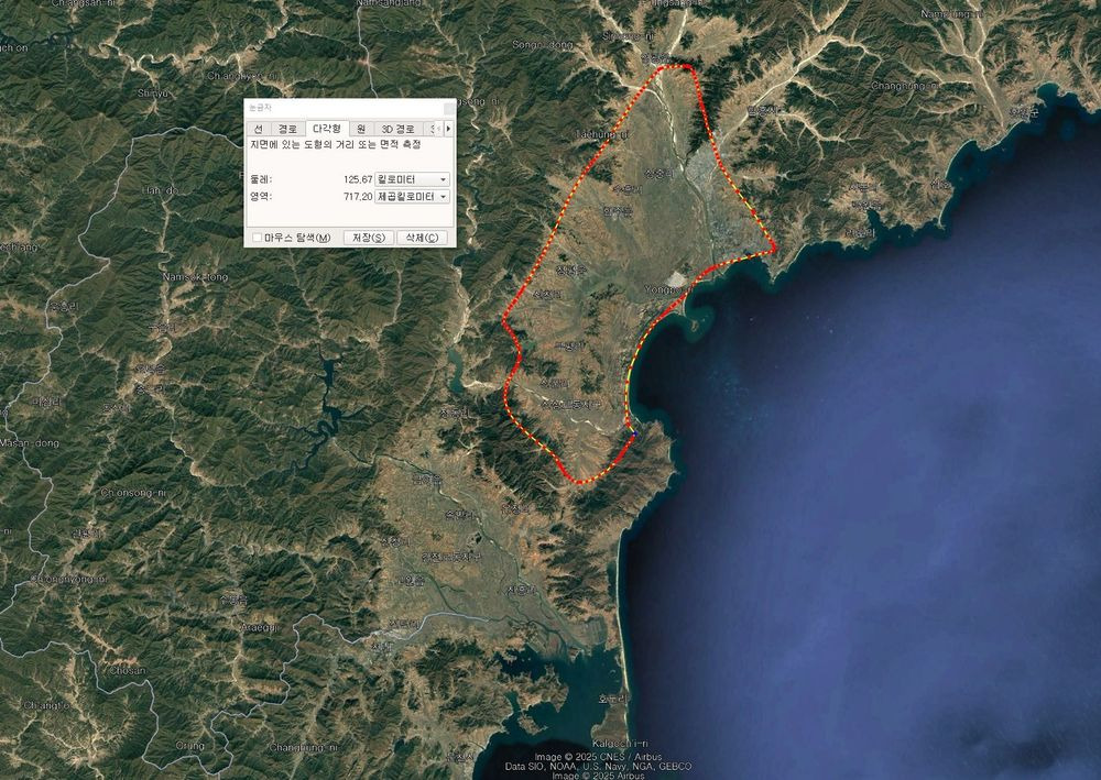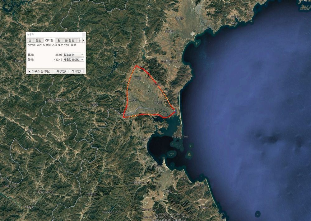 원산만이 얼마나 큰 항만을 끼고있는 지형인지 알수있다.