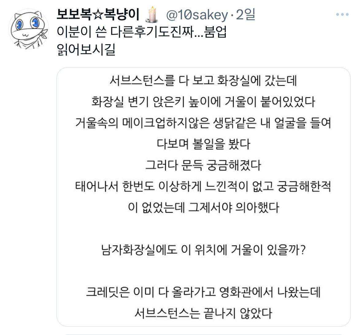 작성자뫄뫄샤샤 작성시간 25.03.04 후기 미쳤음 배급사에서 따로 감사인사 해야할정도