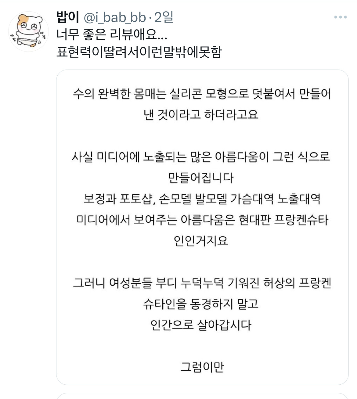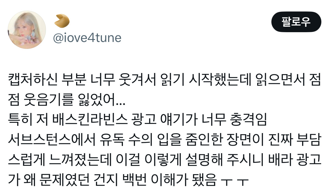 작성자임솔 업고 튀어 작성시간 25.03.24 서술하지 못한 나의 찝찝함을 서술해낸 후기들을 보니 더 흥미롭고 재밌다