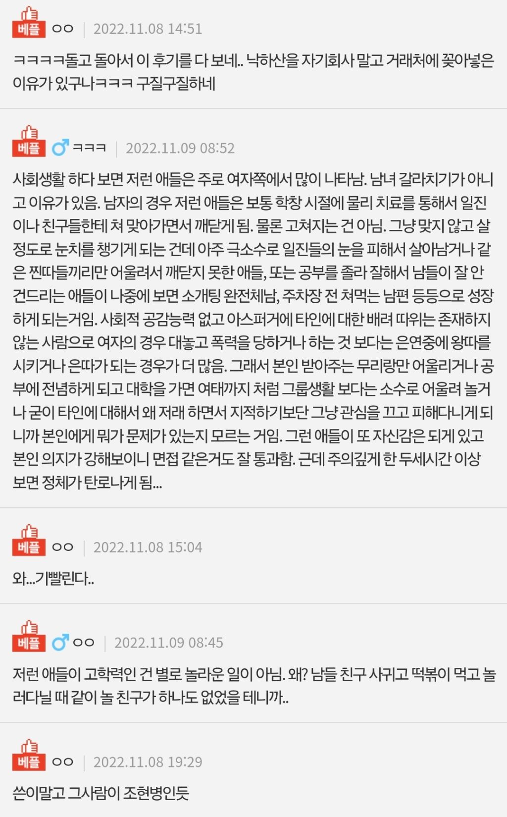 작성자c핱 끼워달라 작성시간 25.02.28 와 후기 첨봐...근데 진짜..못됐다 좀 이상한거 아니까 남에회사에 넣었네..
