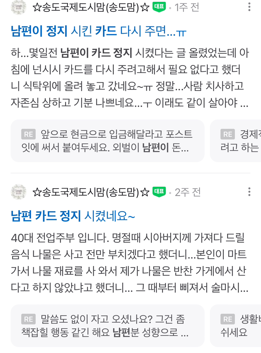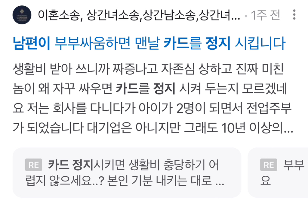 블라인드 같은데도 남편이 전업주부 길들이려면 카드 정지 시키라는 글 수두룩