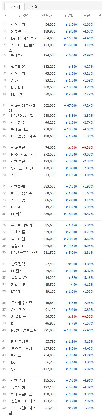 이재원 신한투자증권 연구원은 “미국 주식시장이 관세 영향으로 투자심리가 악화되는 모습이 나타났고 엔비디아를 포함한 반도체 업종이 낙폭을 확대한 것이 국내 증시에도 연동됐다”고 말했다.