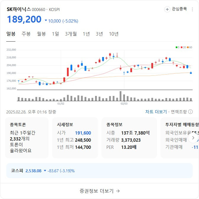 SK하이닉스 4%↓ 등 반도체주 급락에 지수 하방압력 더 커져
