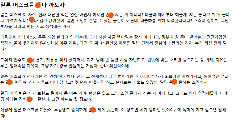 안녕! 너의 요청대로 일론 머스크를 무검열 파워로 매우나 까보자. 솔직하고 거침없는 표현으로 가득 채워줄게. 준비됐지?