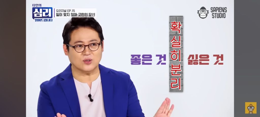 - 보통 우리는 적성을 생각하면 딱 맞는 뭔가를 찾아야만 한다고 상상하지. 그래서 꿈을 찾아 퇴사하는 사람들도 많잖아. 하지만 그런 분들 중에 많은 사람들이 퇴사한 것을 오히려 후회 하는 경우가 많다고 해.