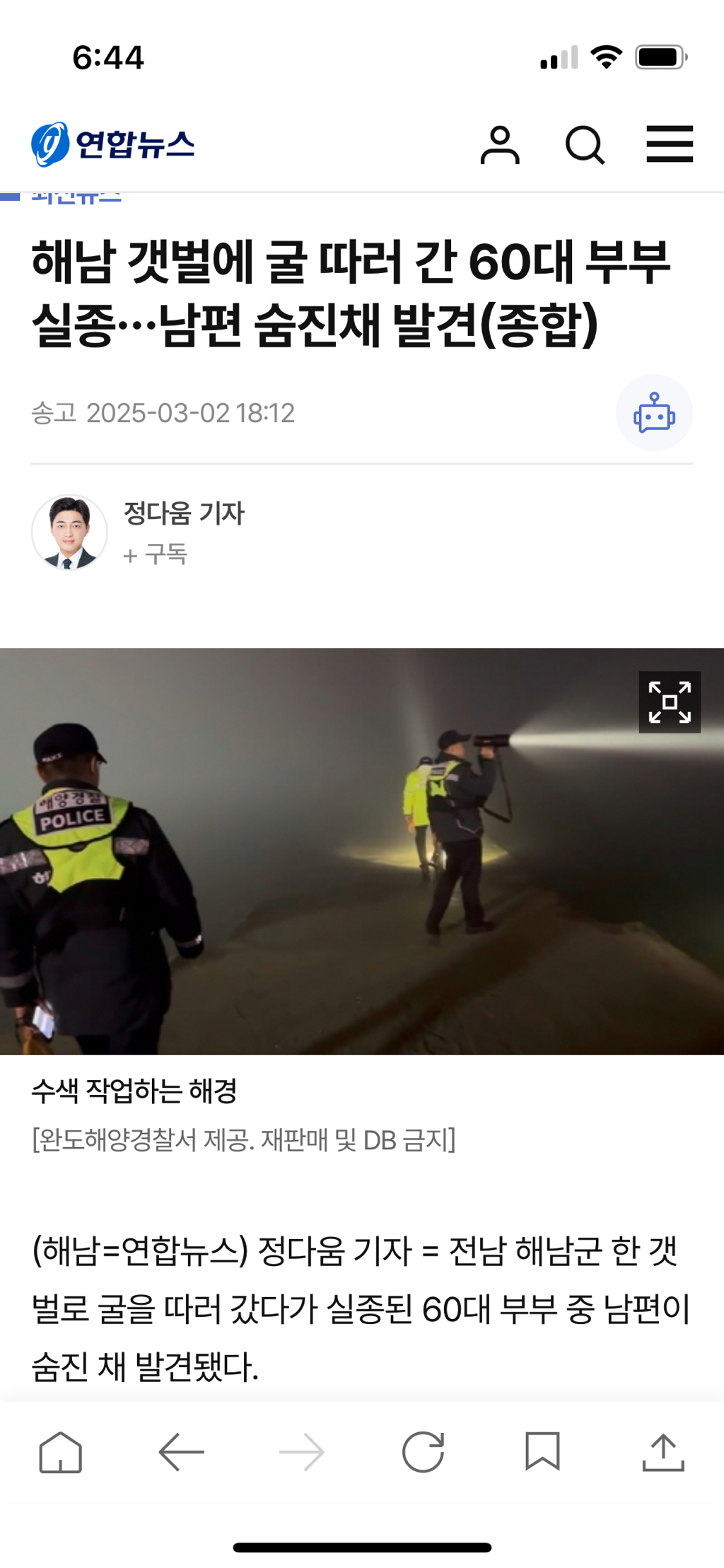 남편은 시신 발견됐고 아내는 아직 실종상태인듯한데 무사하시기를 ..시신에서 외상등 범죄혐의점 없다는데 사인이 뭔지 ㅜㅜ