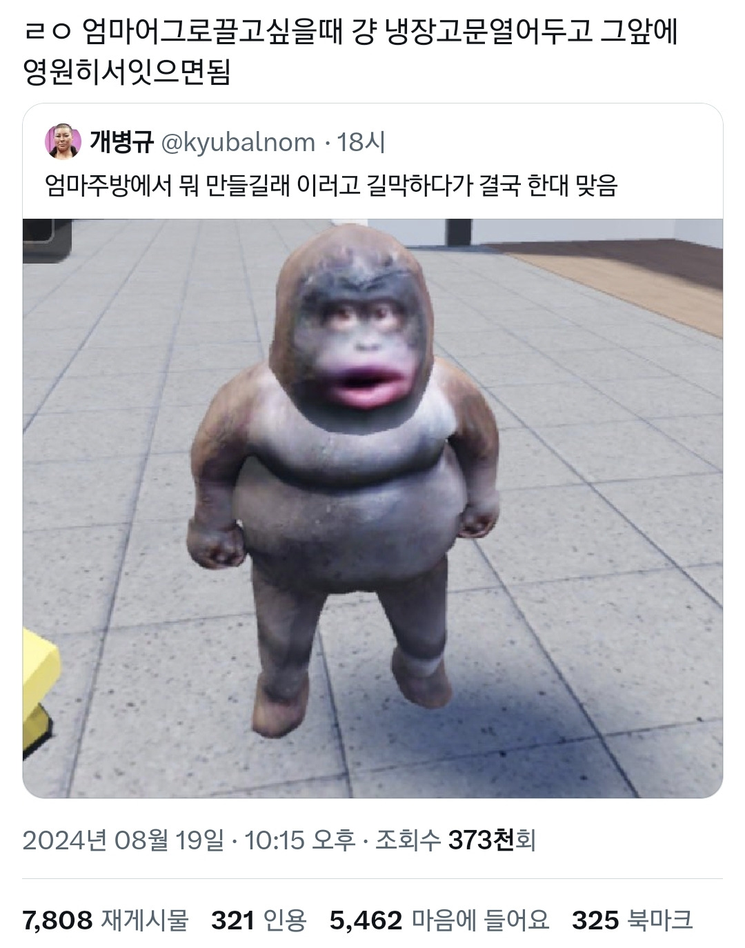 가끔 엄마한테 등짝맞고 싶은 날이 있음