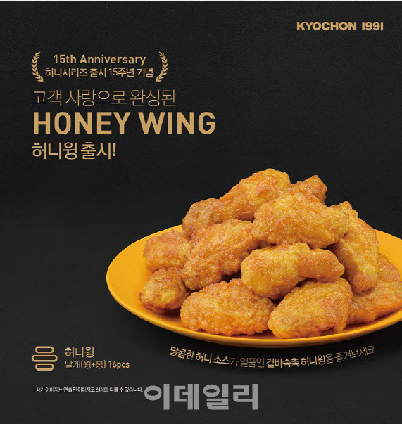 [이데일리 노희준 기자] 교촌치킨을 운영하는 교촌에프앤비가 허니시리즈 탄생 15주년을 맞아 신메뉴 △허니싱글윙(6P)과 △허니윙(16P) 2종을 출시했다고 4일 밝혔다.