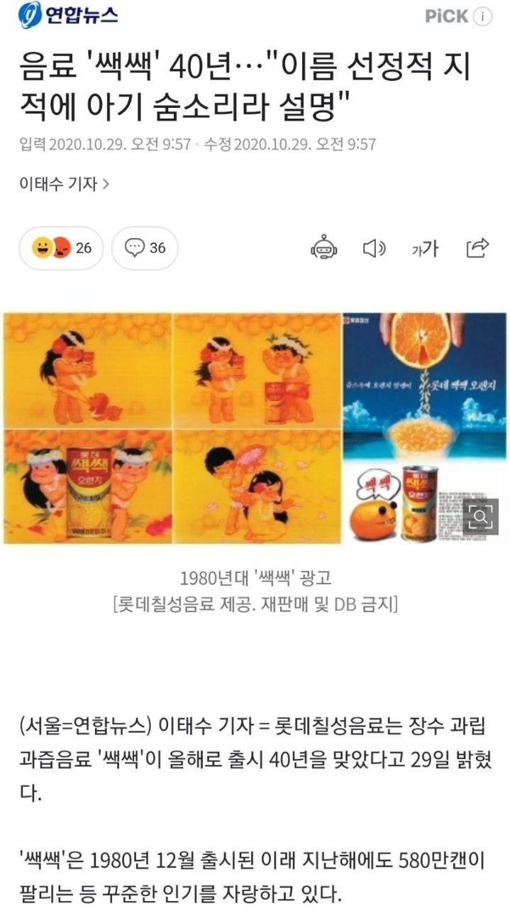 [스크랩] [흥미돋]음료 '쌕쌕' 40년…"이름 선정적 지적에 아기 숨소리" 작성자나프탈렌향|작성시간25.03.04|조회수5,484 목록 댓글 31 글자크기 작게가 글자크기 크게가 중략거부당한거 개웃김ㅋㅋㅋㅋㅋㅋㅋㅋㅋㅋㅋㅋㅋㅋㅋㅋㅋㅋㅋㅋㅋㅋㅋ출처 - https://n.news.naver.com/article/001/0011978635음료 '쌕쌕' 40년…"이름 선정적 지적에 아기 숨소리라 설명"(서울=연합뉴스) 이태수 기자 = 롯데칠성음료는 장수 과립과즙음료 '쌕쌕'이 올해로 출시 40년을 맞았다고 29일 밝혔다. '쌕쌕'은 1980년 12월 출시된 이래 지난해에도 580만캔이 팔리는 등 꾸준한 인n.news.naver.com 다음검색 스크랩 원문 : 쭉빵카페 현재 게시글 추가 기능 열기 북마크 공유하기 신고 센터로 신고 댓글 댓글 31 댓글쓰기 답글쓰기 댓글 리스트 작성자대한민국 대통령 이재명 | 작성시간 25.03.04 아니 한번도 그렇게 생각한 적이 없는데 ㅋㅋㅋㅋㅋㅋㅋㅋㅋ이런 작성자쭈바쭈 | 작성시간 25.03.04 산책좀가라 생각도못해봄 작성자형 나 먼저가네 | 작성시간 25.03.04 하놔 ㅋㅋㅋㅋㅋㅋㅋㅋㅋ 작성자저녁없는삶 | 작성시간 25.03.04 ㅋㅋㅋㅋㅋㅋㅋㅋㅋ아 댓글 개웃기네 작성자햄스터꼬리곰탕 | 작성시간 25.03.04 난 쌔그러워서 쌕쌕인줄 알았지 ㅋㅋㄱㄱㅋ 댓글 전체보기