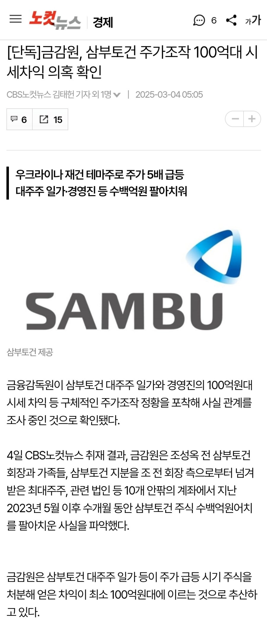 금감원은 삼부토건 대주주 일가 등이 주가 급등 시기 주식을 처분해 얻은 차익이 최소 100억원대에 이르는 것으로 추산하고 있다