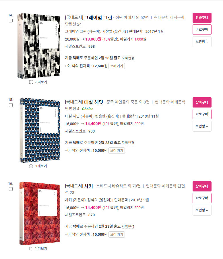 문학 시리즈로는 민음사 쏜살문고도 재밌는거 많아ㅋㅋ -
