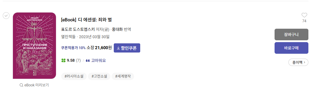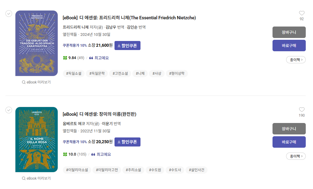 다음으로 소개할 시리즈는 '교보문고'에서만 접할 수 있는 열린책들 출판사의 디 에센셜 시리즈인데요