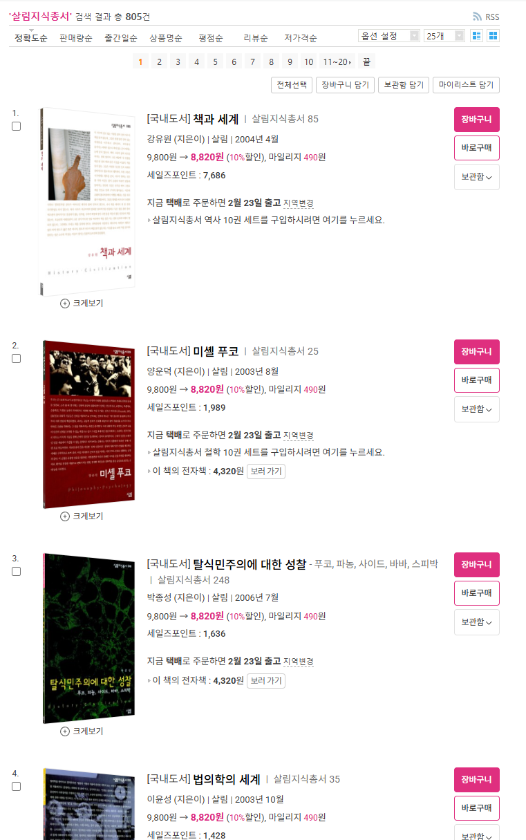 가장 역사가 깊은(?) 살림지식총서 시리즈 되시겠습니다...