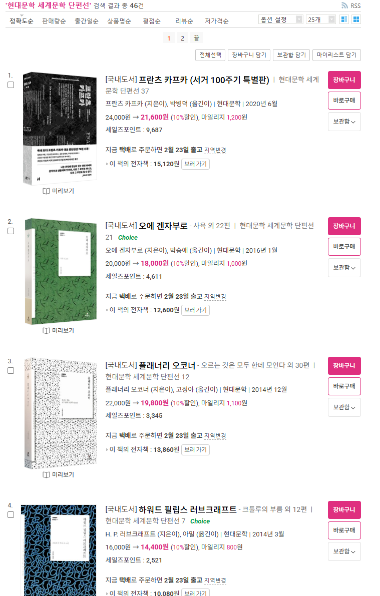 바로 출판사 현대문학에서 펴낸 세계문학단편선 되시겠다.