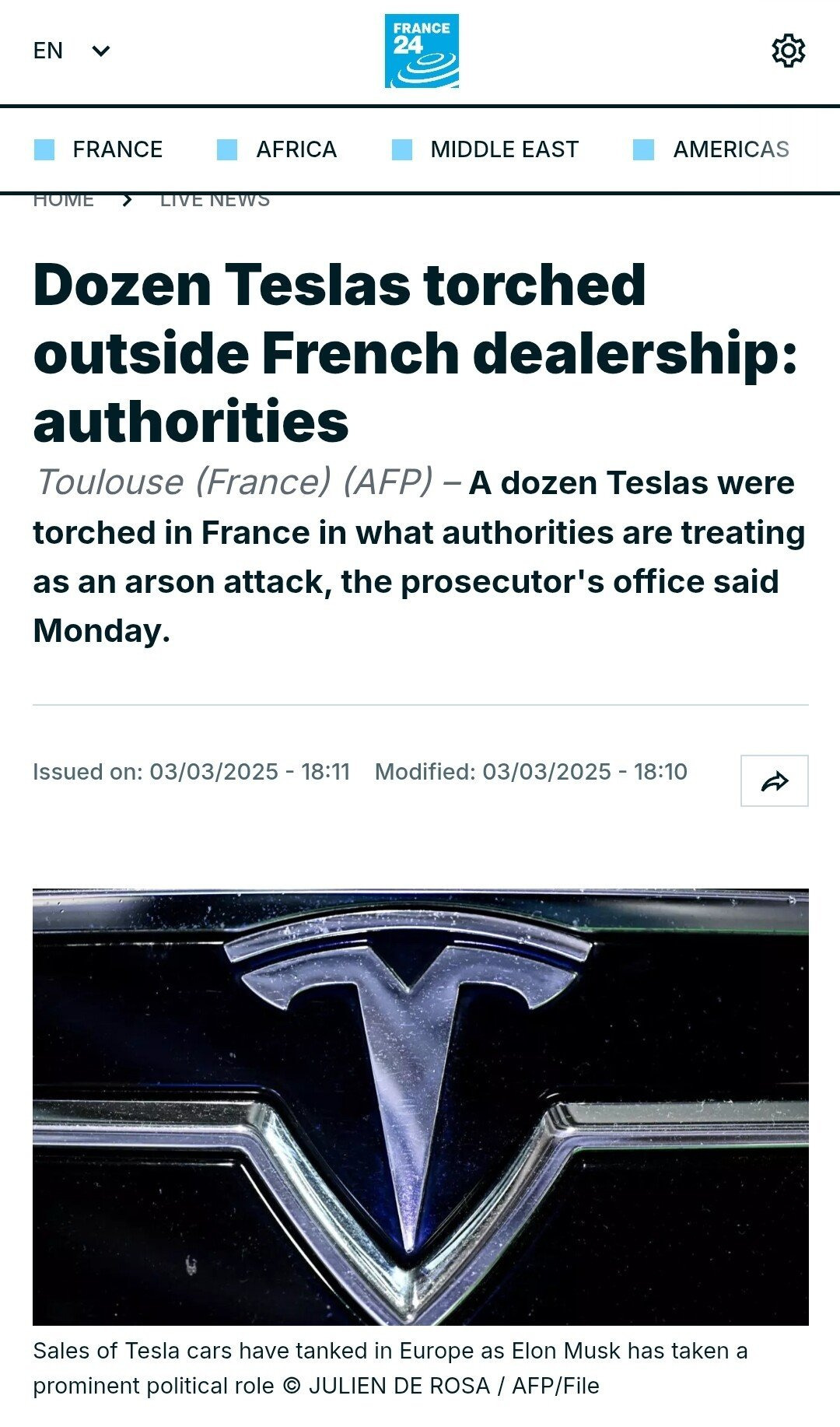 3월 3일 프랑스에서 테슬라 12대가 불타