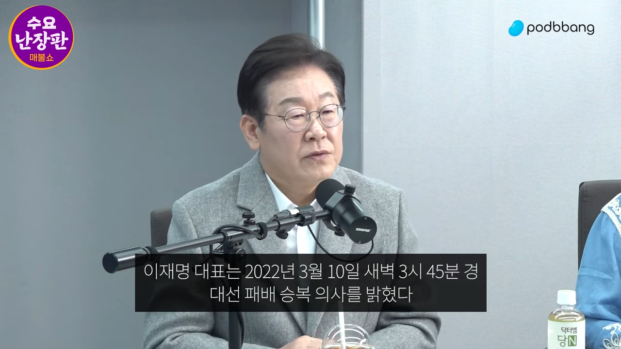 이재명 : 어... 뭐 아까도 말씀드렸는데 저는 이제 일어날 수 있는 가능한 경우를 다 상정해서 사실 미리미리 대비를 다 하는 편이에요. 그러니까 가장 상황이 좋을 때도 안 좋은 상황이 벌어졌을 경우를 대비를 해놔야 되기 때문에 저는 양쪽을 다 생각해 놨죠. 생각해 놓고 물론 뭐 다 준비도 하고. 그런데 저는 처음에 개표를 할 때 우리가 많이 앞섰잖아요. 근데 그게 좀 좁혀 들어가더라고요? 밤 12시 넘어 1시 좀 넘으면서 아 졌구나 그때는 거의 따라 따라잡힌 상태. 결국은 아, 지겠구나. 그래서 결국 졌고. 이럴 거면 깔끔하게 빨리 정리를 해 줘야 된다. 이제 미련을 갖게 되면 갈등이 격화되잖아요. 더구나 미세한 차이로 질 것 같은데 그러면 이제 미련 남고 저쪽은 불안하고 자칫 잘못하면 이게 충돌이 발생할 수도 있어서 제가 빨리 정리를 해 준 거예요.