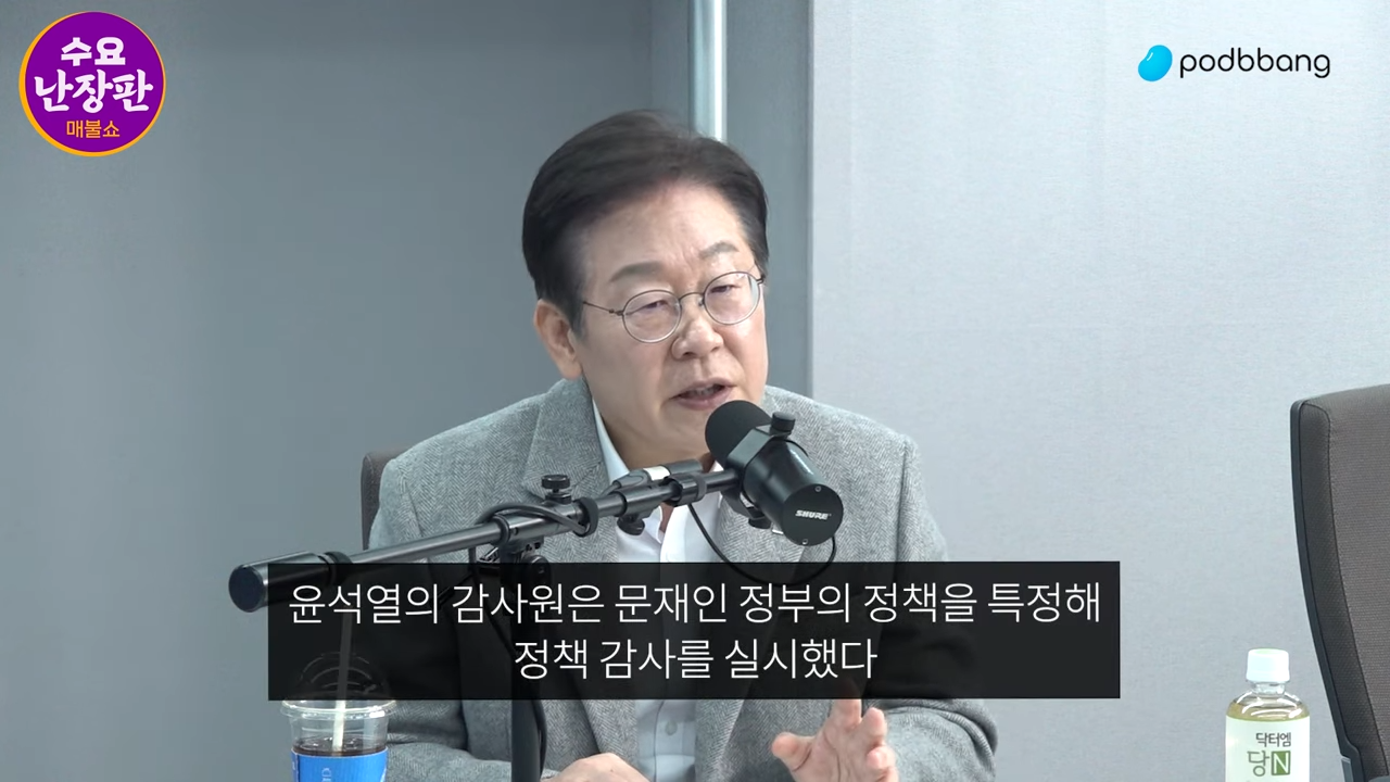 이재명 : 이 정부가 저지른 잘못, 거의 범죄에 가까운 여러 가지가 있는데 그중에 심각한 게 이 소위 정책 감사를 악용한 거예요. 이 사람들이 '너 옛날에 왜 이렇게 결정했어?' 근데 그때 당시는 미래를 알 수가 없잖아요. 이런 판단 저런 판단할 수 있는데 잘 되면 가만 놔두고 잘못되면 '왜 했어' 이렇게 물어보니까.