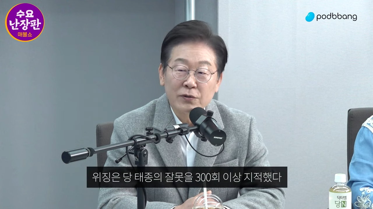 이재명 : 많이 듣죠. 많이 듣고 저는 이제 역사 속에서 많이 이제 배우는 편인데 당나라가 600년에 가장 튼튼한 나라를 제국을 만들었잖아요. 그 힘이 뭐냐 하면 '정관정요'라고 하는 그 책으로 후세들을 가르쳤어요. 그리고 위징이라는 사람이 원래 그 당태종의 형님의 책사였죠. 책사였는데 그 반란군 일종의 적군의 참모장이었는데 그거 데려다가 잔소리하는 쓴소리하는 역으로 일부러 쓴 거예요.