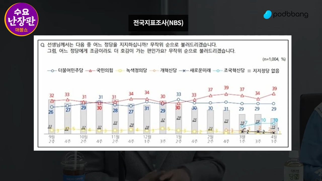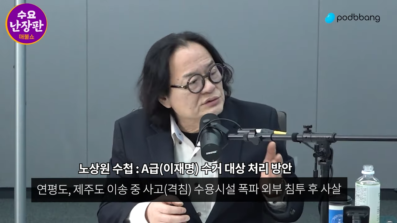 최욱 : 수요, 난장판. (음악) 지난 대선 이후 3년 만에 함께 합니다. 참~ 섭외가 쉽지 않았습니다ㅋㅋㅋㅋ네. 서운한 마음도 크고요. 자 그러면 오늘 함께하실 분들 한 분 한 분 소개를 해 드리겠습니다. 먼저 김갑수 옹 박수로 맞이합니다.
