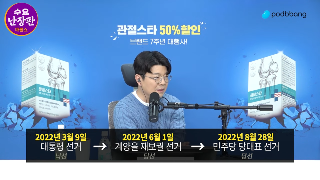 최욱 : 자유롭게 갑니다 저는. 지난 대선 이후 오늘이 이제 첫 만남이니까 지난 대선 때 이야기부터 좀 잠깐 좀 해보고 싶습니다. 2022년 3월 9일 대선 투표가 있었는데 개표가 이제 어느 정도 완료가 되면은 당선자가 연설을 하지 않습니까? 근데 저는 그때 윤석열이 단상에서 그걸 하는 모습을 떠올릴 때마다 정말 죽고 싶었거든요. 정말. 너무너무 끔찍했었어요. 그런데 그 끔찍한 일이 0.73% 포인트 차로 일어나 버렸잖아요. 그리고 저는 3월 10일에 방송을 해야만 하는데 와... 저는 아직도 생생하게 너무 힘들었어요.