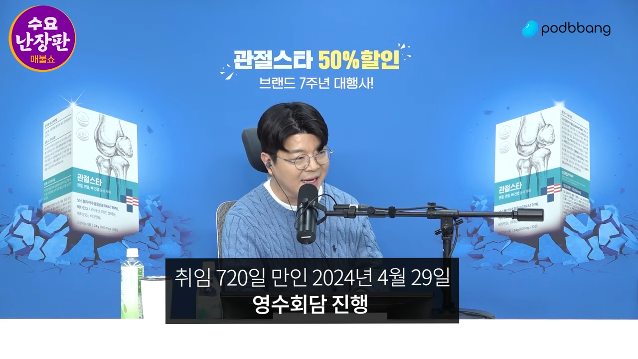 최욱 : 고맙습니다. 자 그리고 3년 만에 함께하는데요, 야~ 그 3년 사이에 정말 너무나도 많은 일들이 있었습니다. 그래서 여쭤보고 싶은 말도 많고 궁금한 것도 너무 많습니다. 정말 어렵게 섭외했습니다. 이재명 대표, 박수로 맞이합니다.